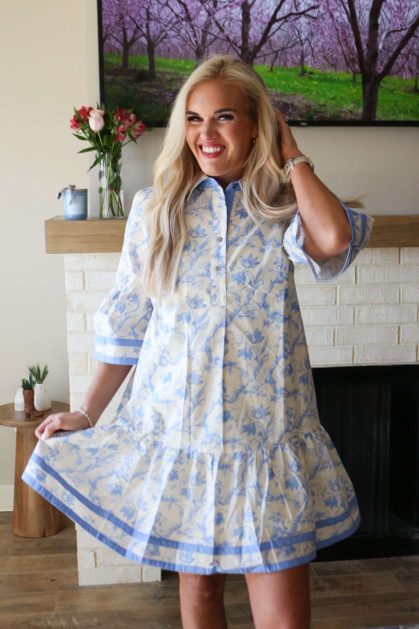 Keeping My Promise Blue Floral Collared Dress