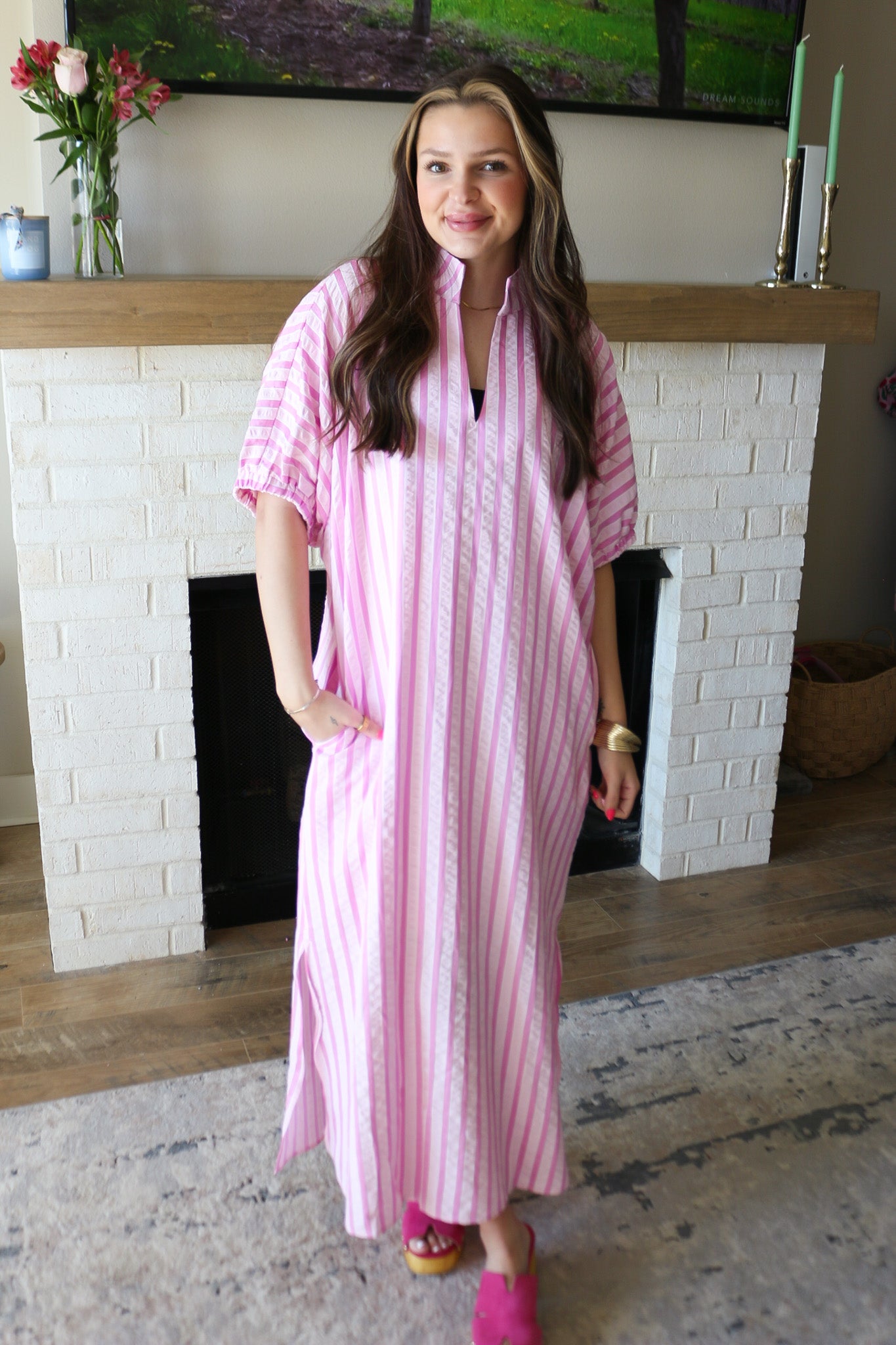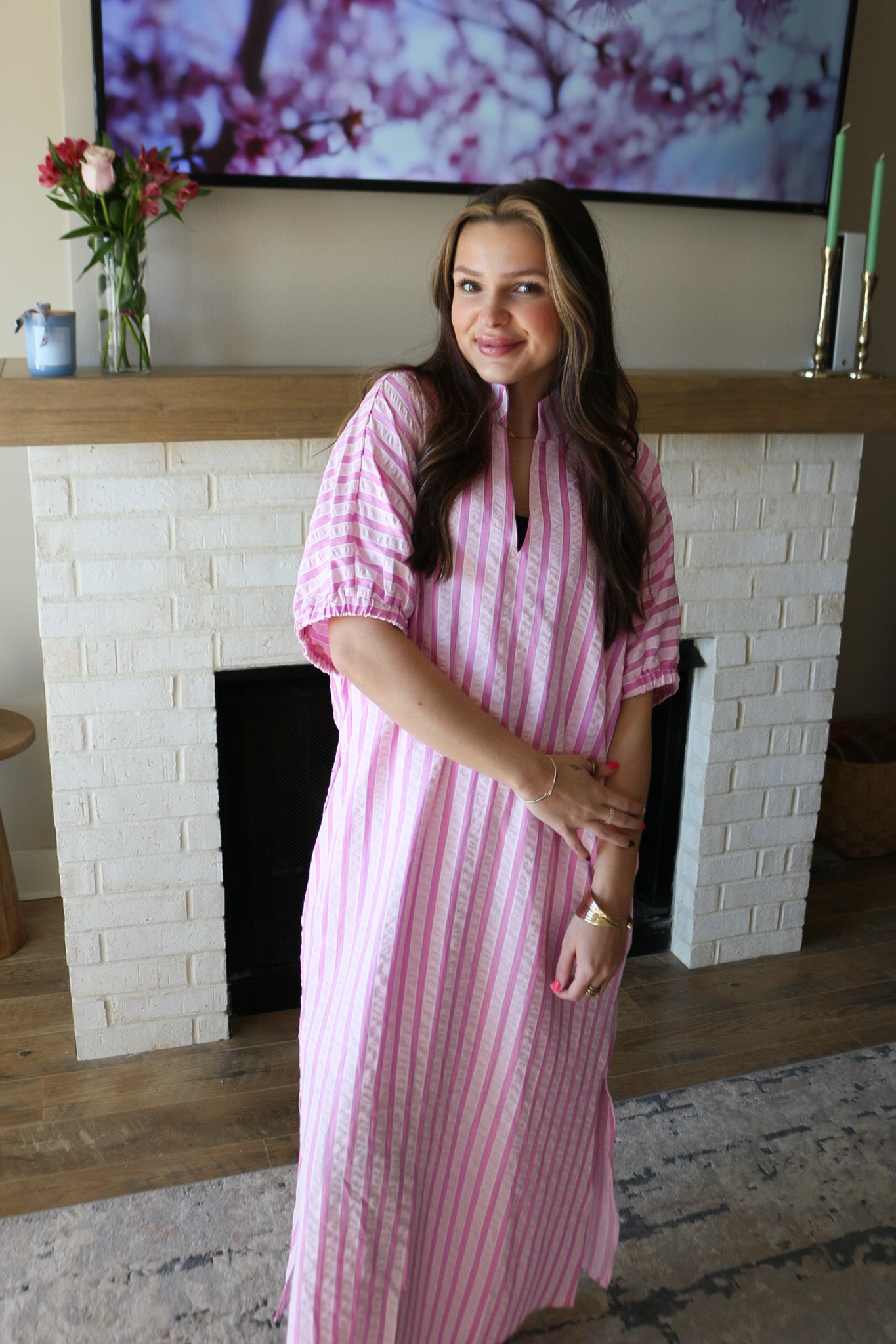 Twirl through your day in this charming pink stripe maxi dress that effortlessly blends retro romance with modern ease. The flowing silhouette skims gracefully over your frame, while the classic striped pattern adds a playful pop of personality. Perfect for everything from casual brunches to sunset strolls, this dress is your go-to for looking put-together without trying too hard. Slip it on and let the good vibes follow.