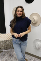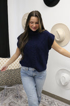 Embrace your most confident self in this navy blue knit sweater that says "I'm too cool to care." Crafted from soft, cozy knit fabric, it's the perfect layering piece for anyone who refuses to sweat the small stuff. Whether you're running errands or making a casual statement, this sweater delivers effortless style without the drama. Pair it with your favorite jeans or dress it up—either way, you're giving main character energy.