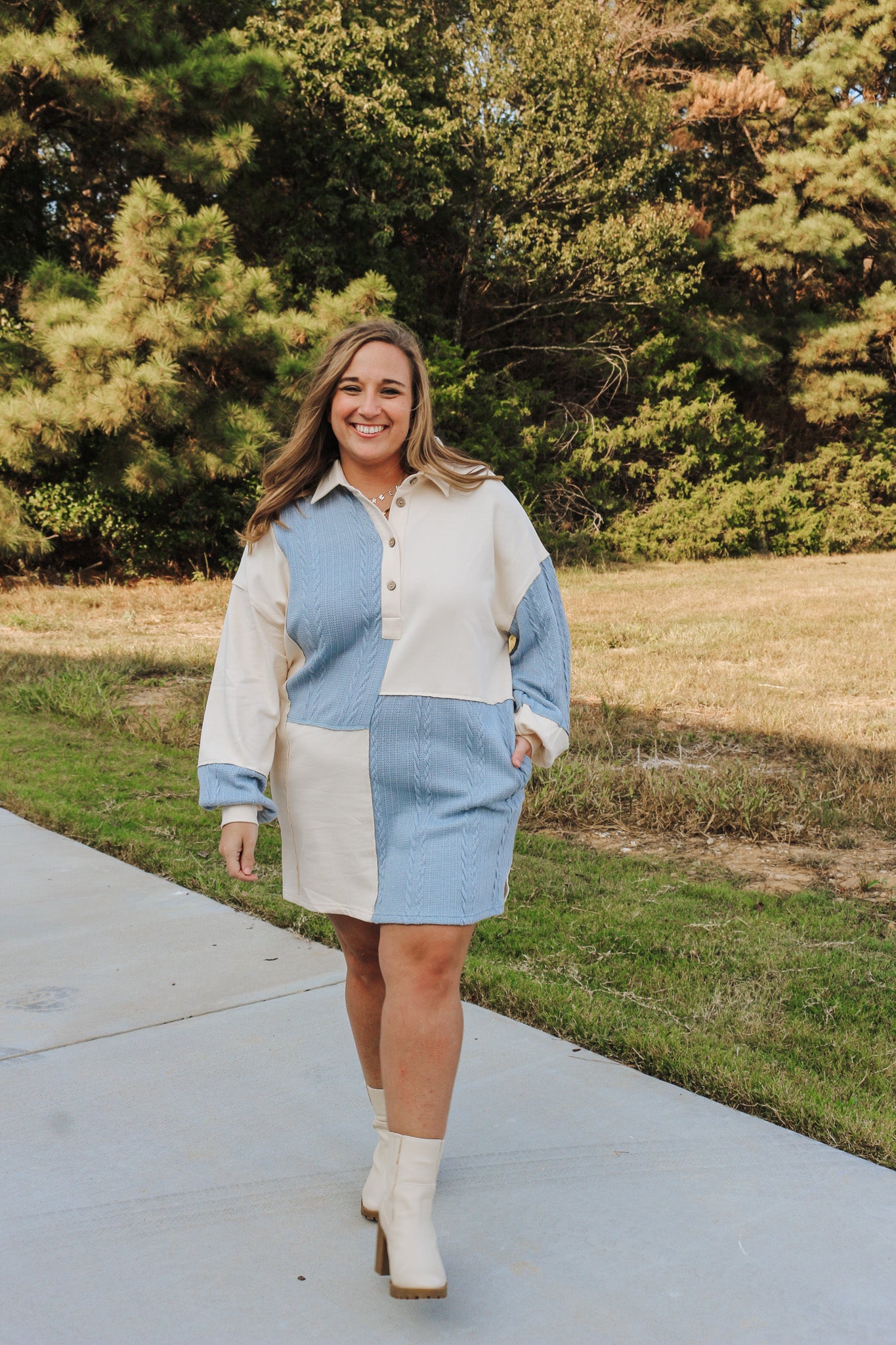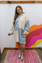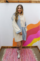 Get ready for fall with our Fall Flavor Cream Blue Dress! This dress features a half button design and long sleeves, keeping you stylish and cozy as the weather changes. Perfect for any occasion, this dress is a must-have for your fall wardrobe. Order now and be the envy of everyone this season!