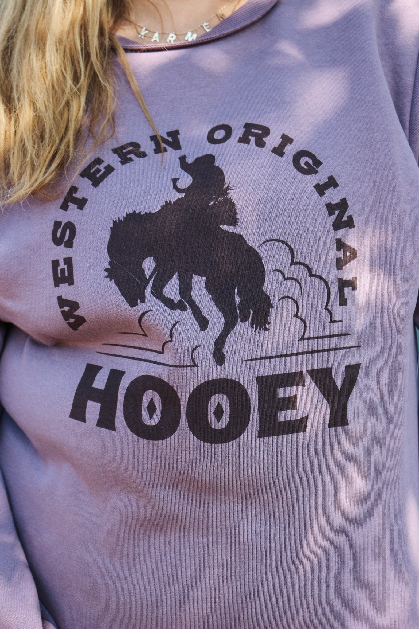 Introducing the ultimate statement piece for any trendsetter: the Purple Women's Hooey Sweatshirt. Made with a vibrant purple color and featuring the iconic "Hooey" logo, this sweatshirt is perfect for standing out in style. Stay cozy and make a statement with Hooey.
