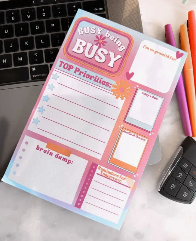 Make your to-do lists merry and bright with this pink notepad! It's the perfect gift for anyone needing a bit of extra motivation to get things done — Busy Being Busy!