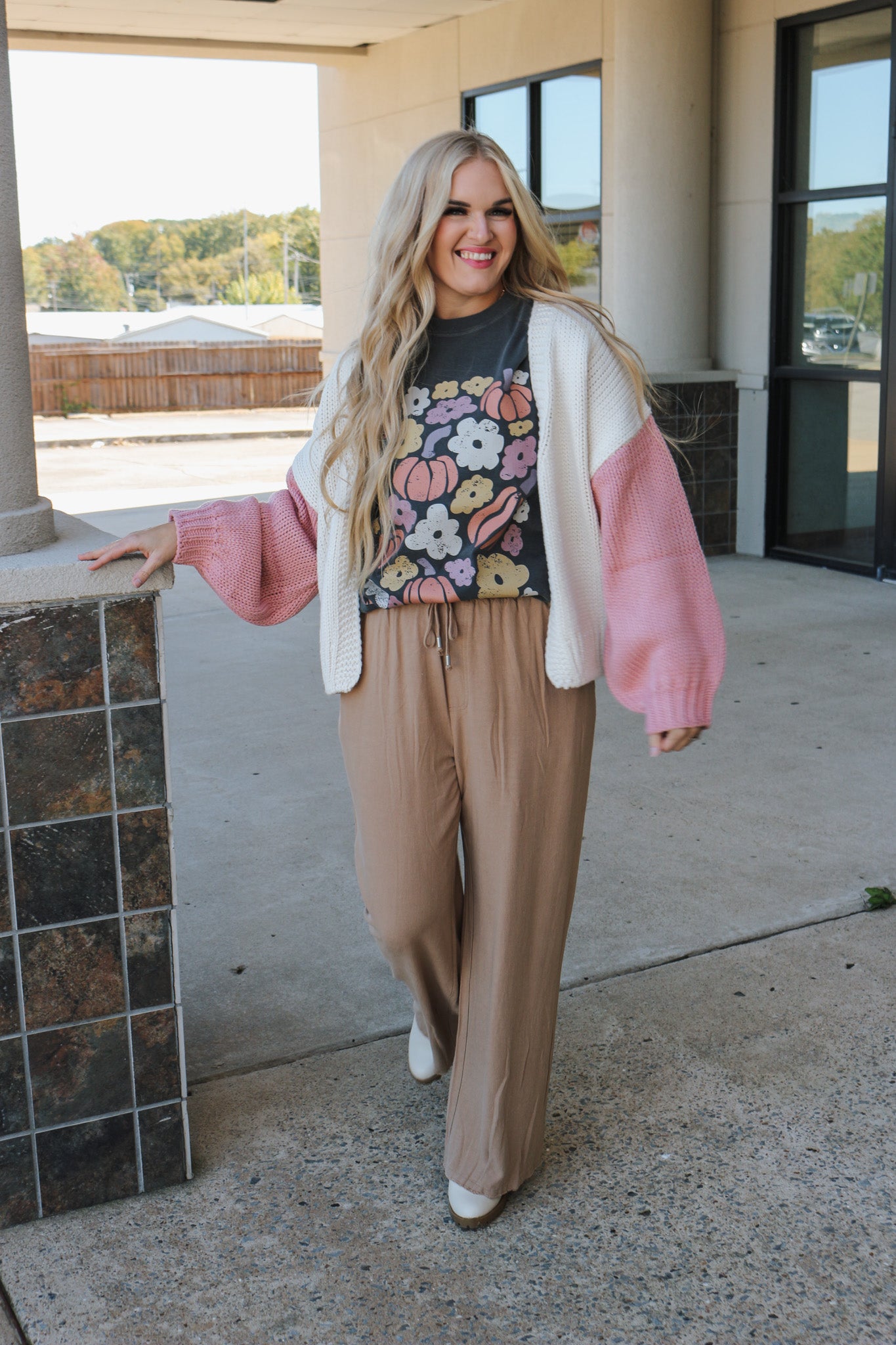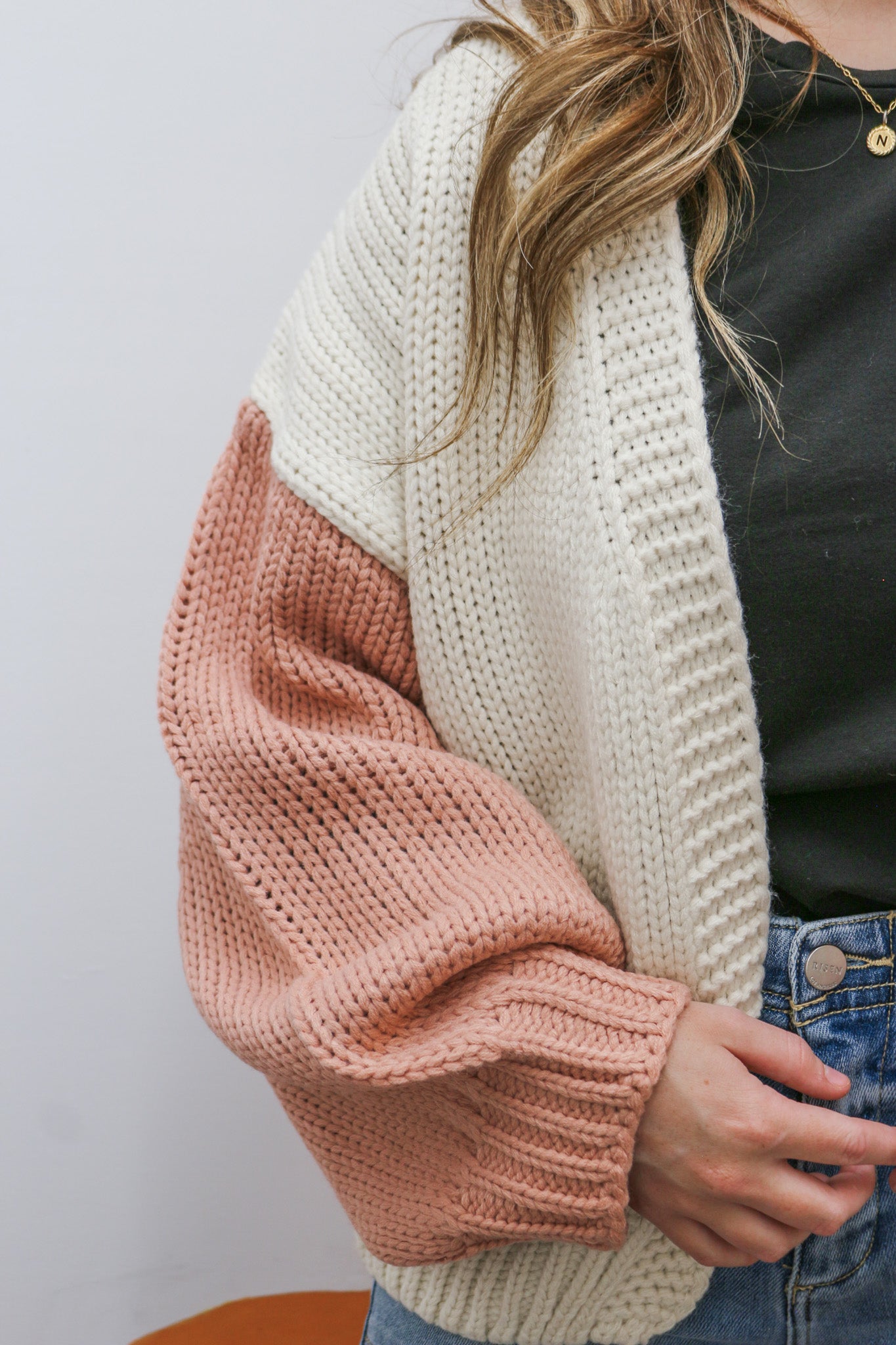 Cafe Errands Mauve Cream Sweater Cardigan