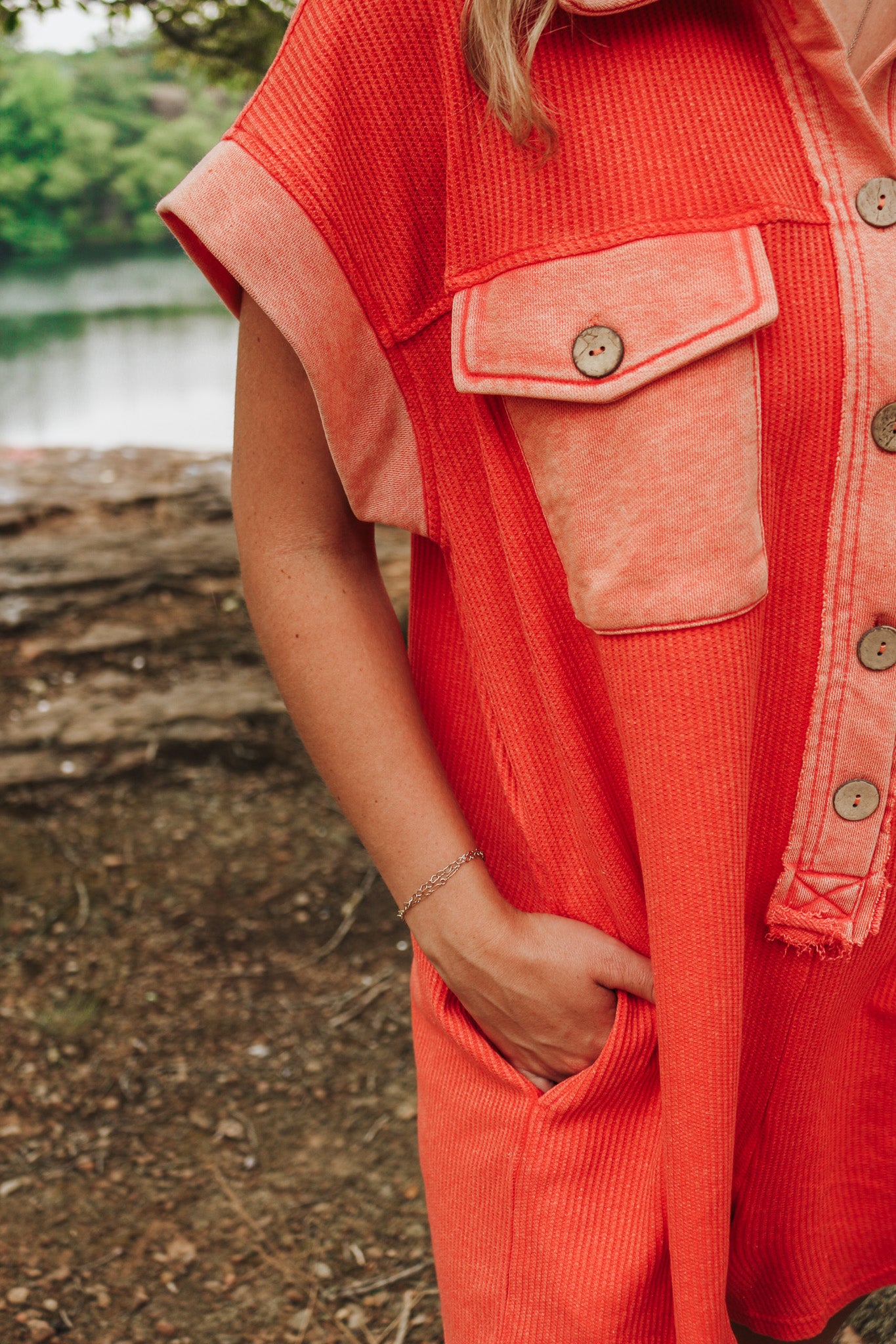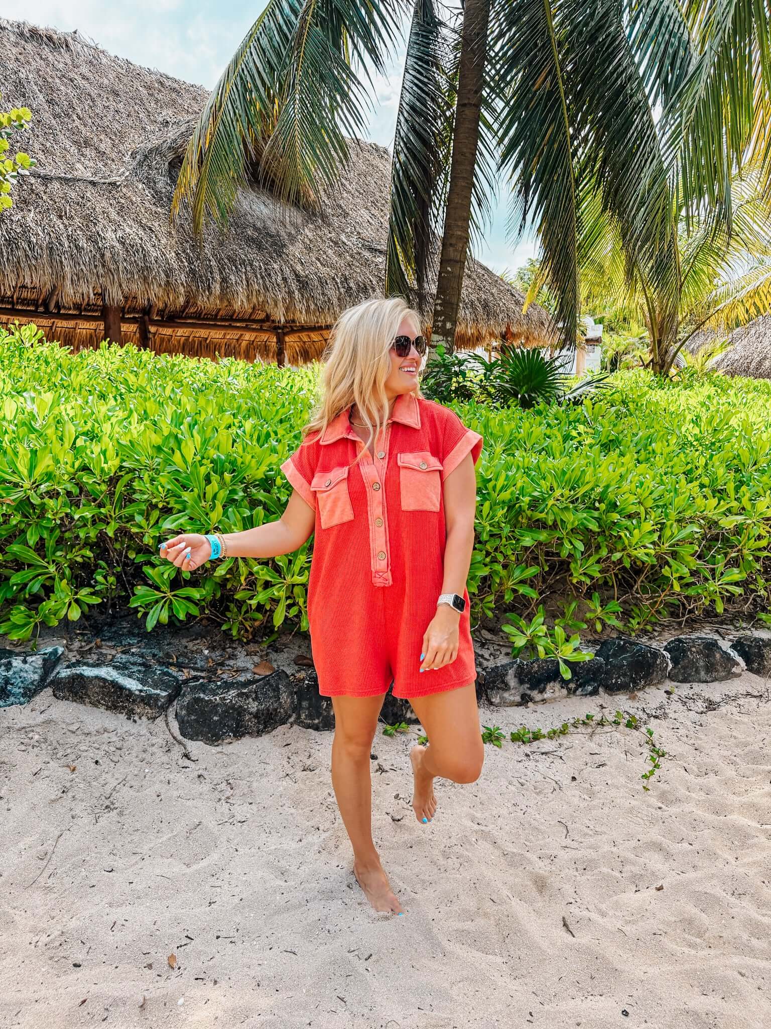 If you’re heading somewhere warm (or just want to look like you are), this red romper is it. It’s one of those throw-on-and-go pieces that still turns heads. The fit is intentionally oversized, super comfy, and soft enough to wear all day whether you’re sightseeing, grabbing brunch, or heading out at night with cute sandals and sunnies.