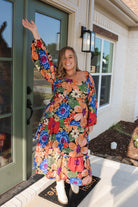 Elevate your fall style with our Flourish In Fall Black Multi Floral Midi Dress! Featuring long sleeves, this dress is perfect for cooler weather while still showing off a gorgeous floral print. Embrace your fashionable side and stand out in any occasion.