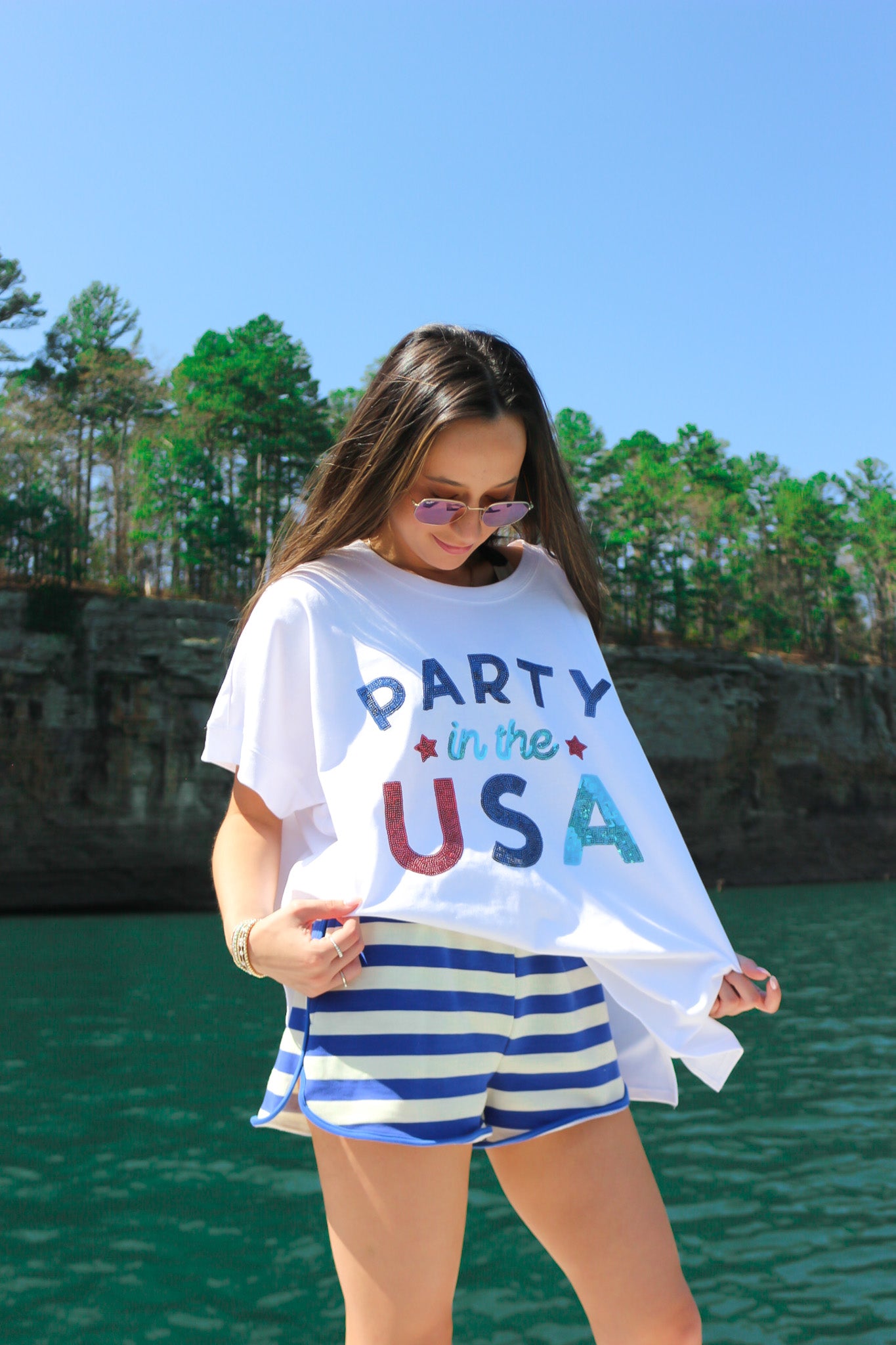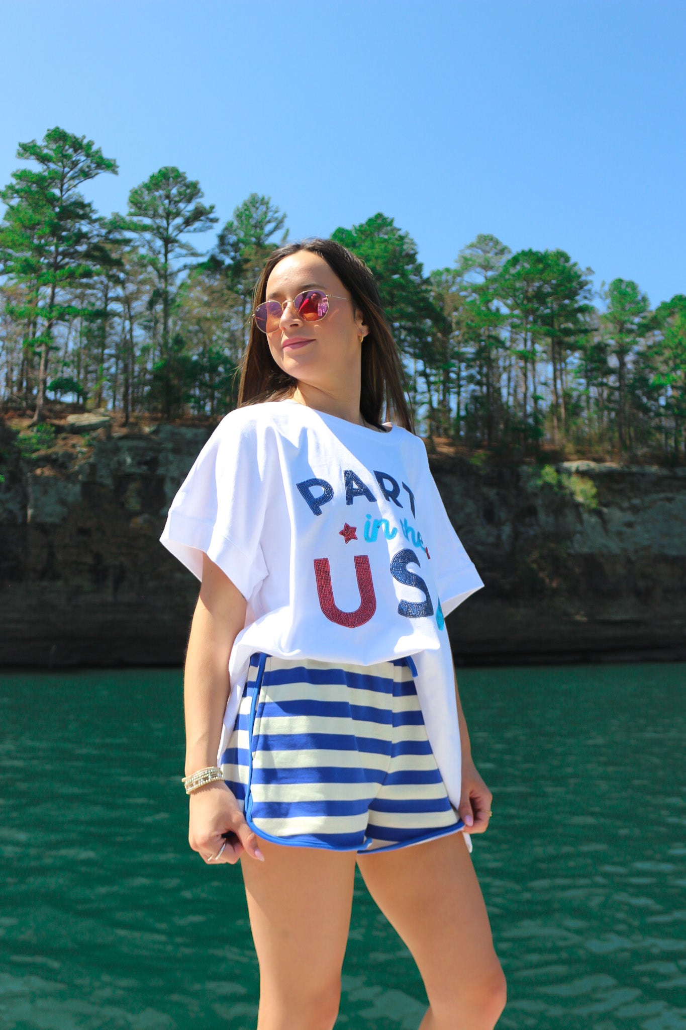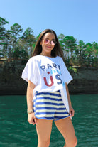 Embrace effortless summer style with these Sunny Splash Stripe Royal Blue Terry Shorts. Crafted from soft French terry fabric, these dolphin shorts deliver comfort and a relaxed fit perfect for warm-weather days. The classic royal blue stripe design adds a playful touch to your casual wardrobe. Whether you're lounging at home or running errands, these shorts offer the breathable ease you need. Pair them with your favorite tee for an instantly put-together look.