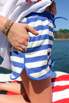Sunny Splash Royal Blue Striped Terry Shorts