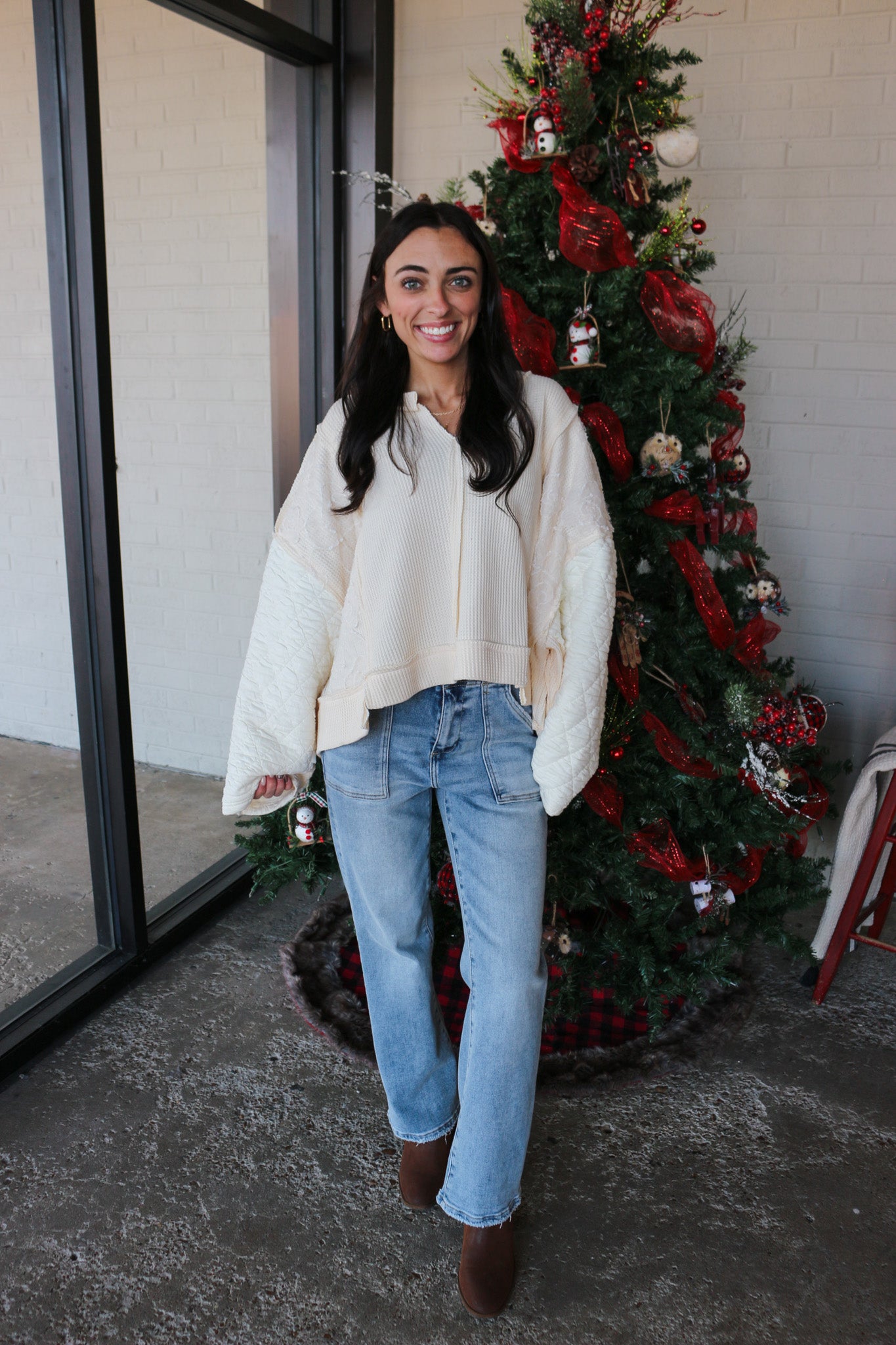 Seasonal Memories Taupe Beige Patch Top