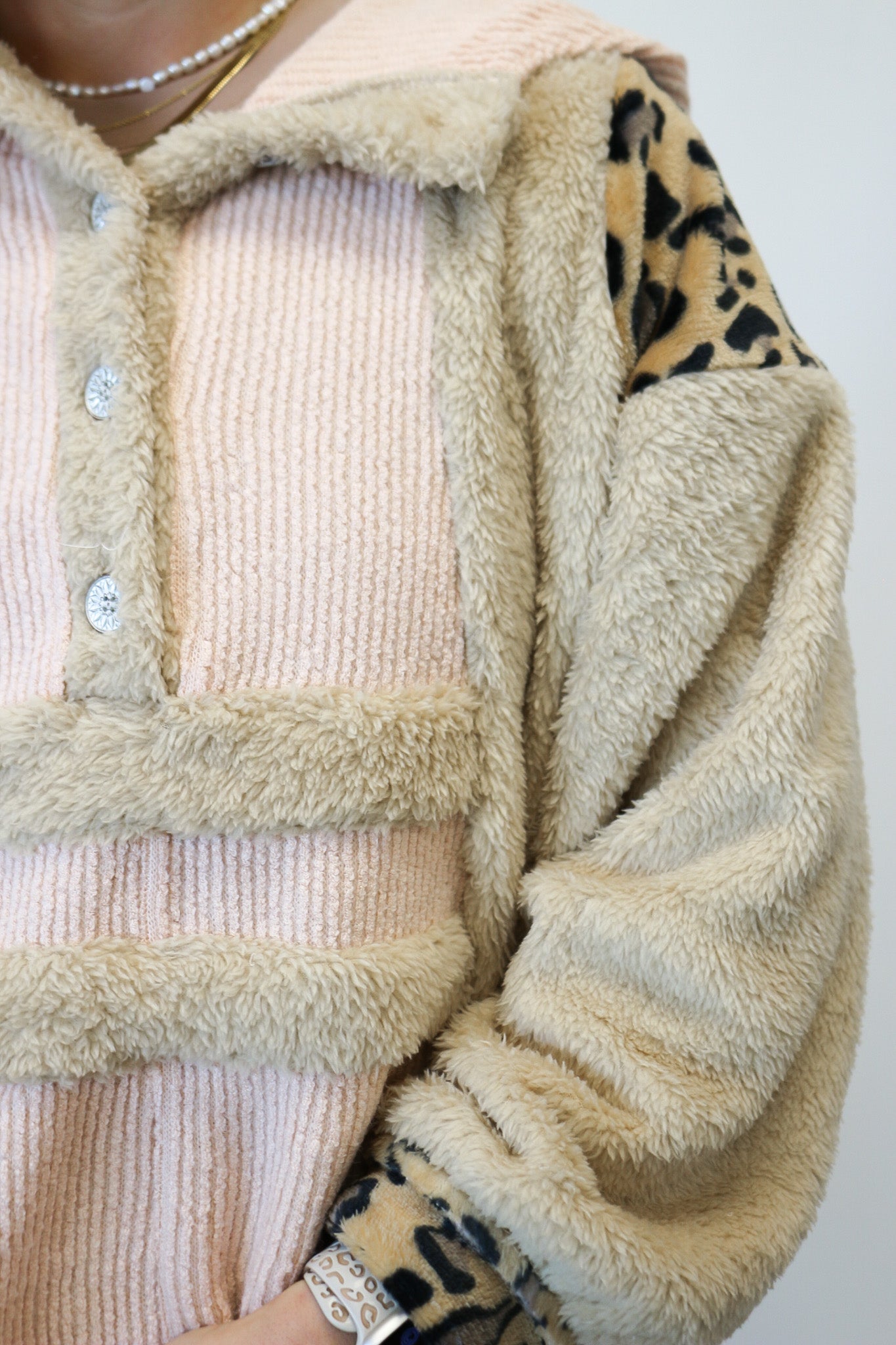 Friendly Fire Pink Beige Leopard Sherpa Hoodie
