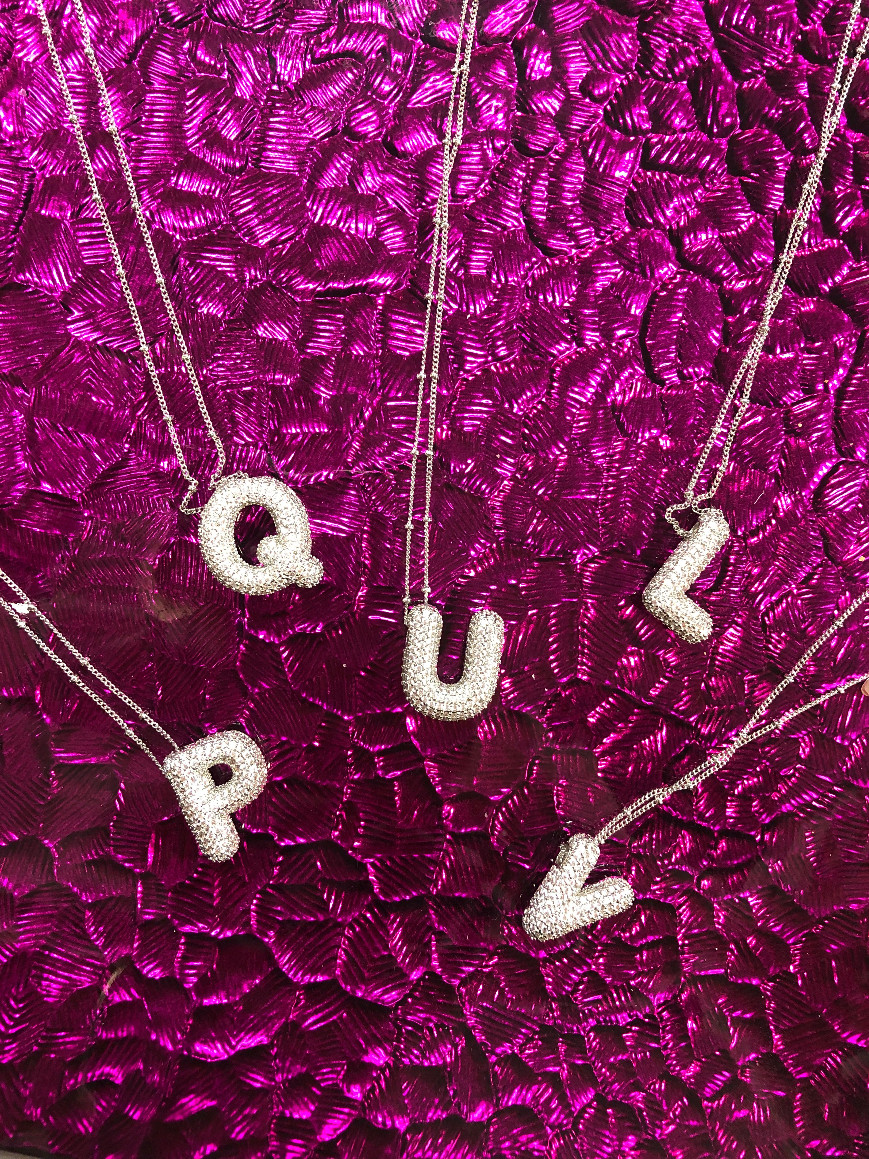 Silver Rhinestone Initial Bubble Letter Q Necklace