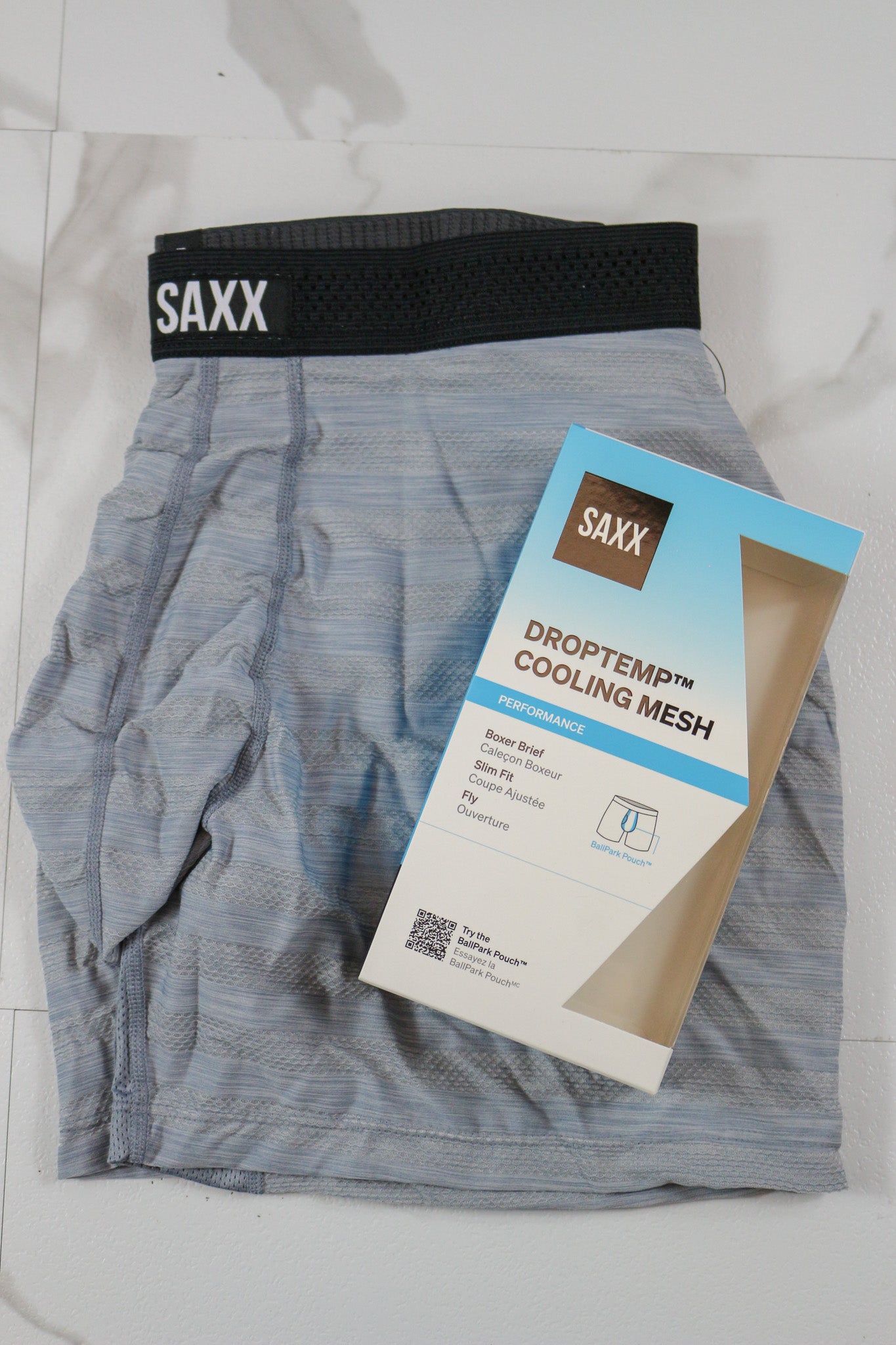 SAXX DropTemp Cooling Mesh Heather Grey Cooling Mesh Boxer Brief 5"