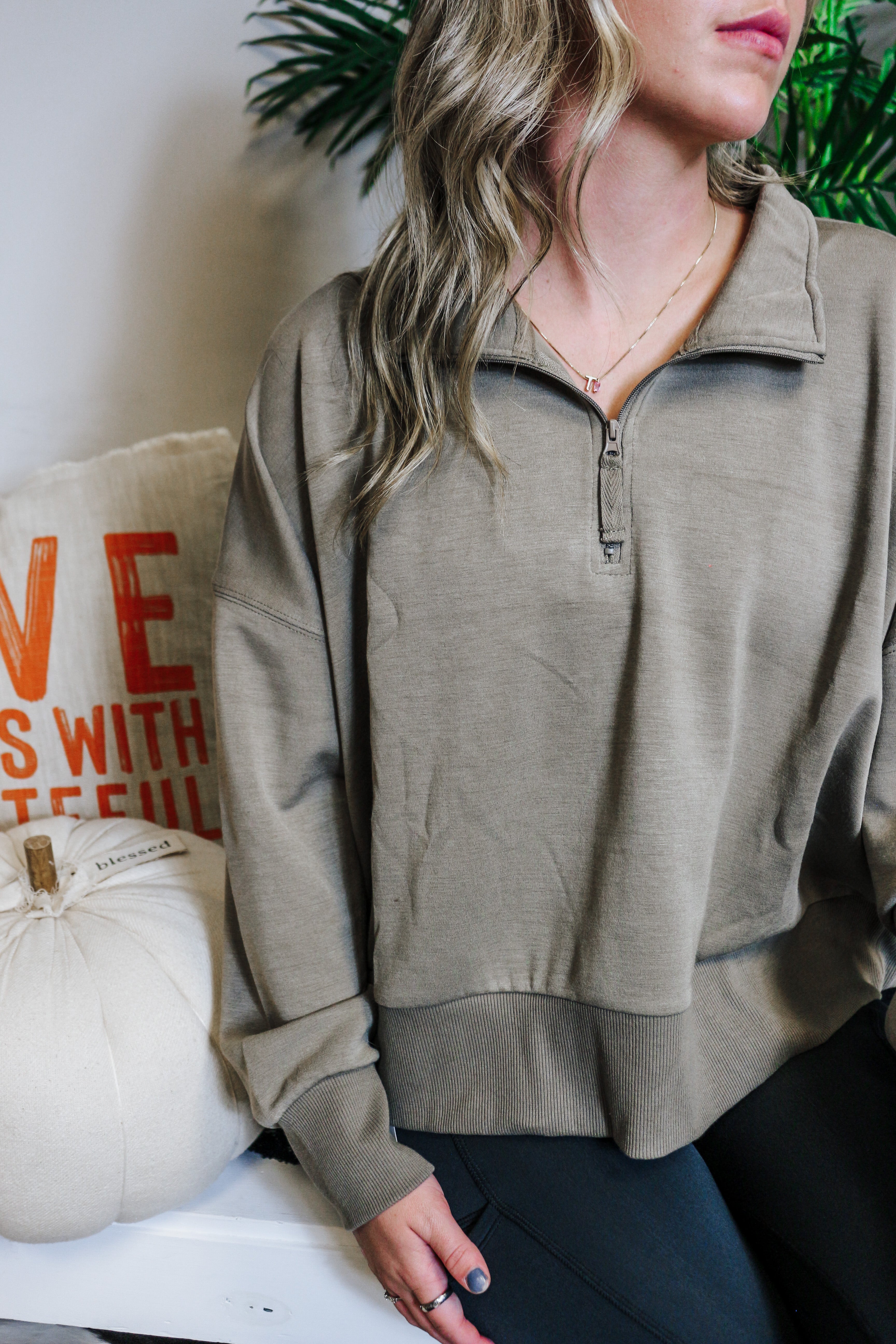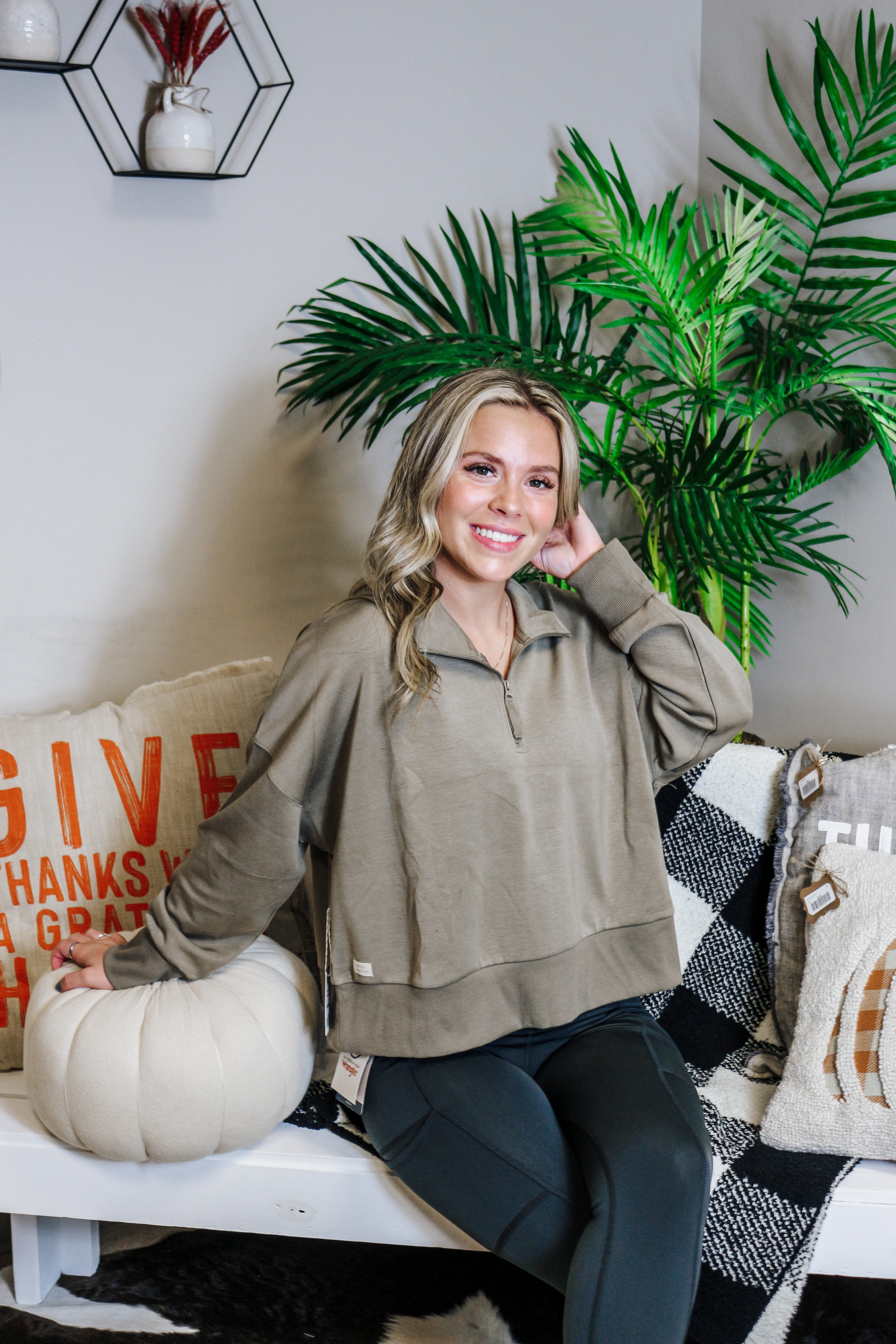 Simply Southern Quarter Zip Crop Pullover Jacket Moss