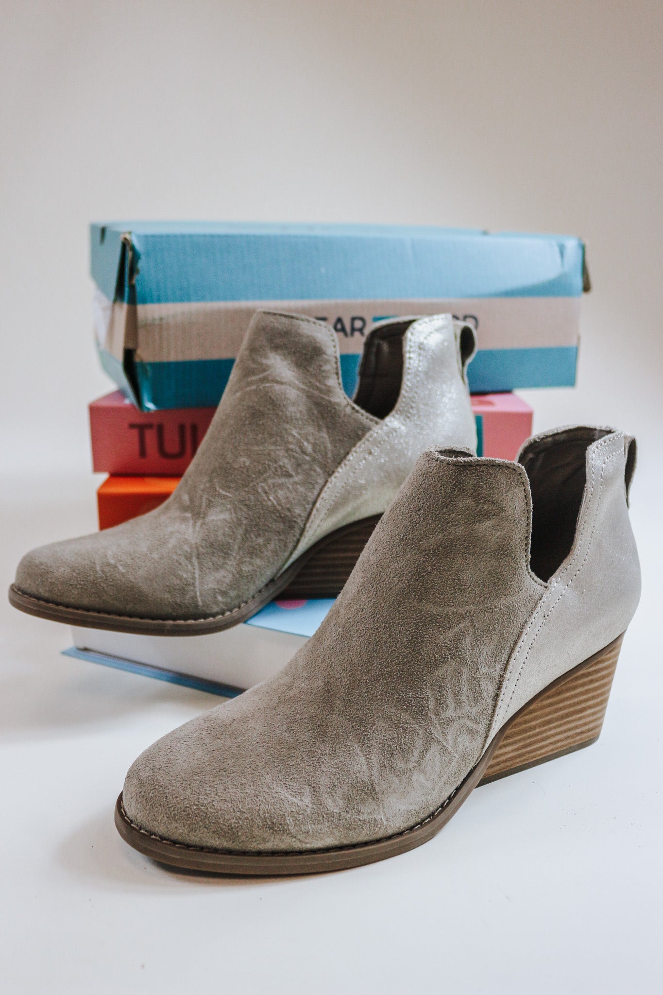 - Suede uppers. TOMS leather products support responsible manufacturing via the Leather Working Group.