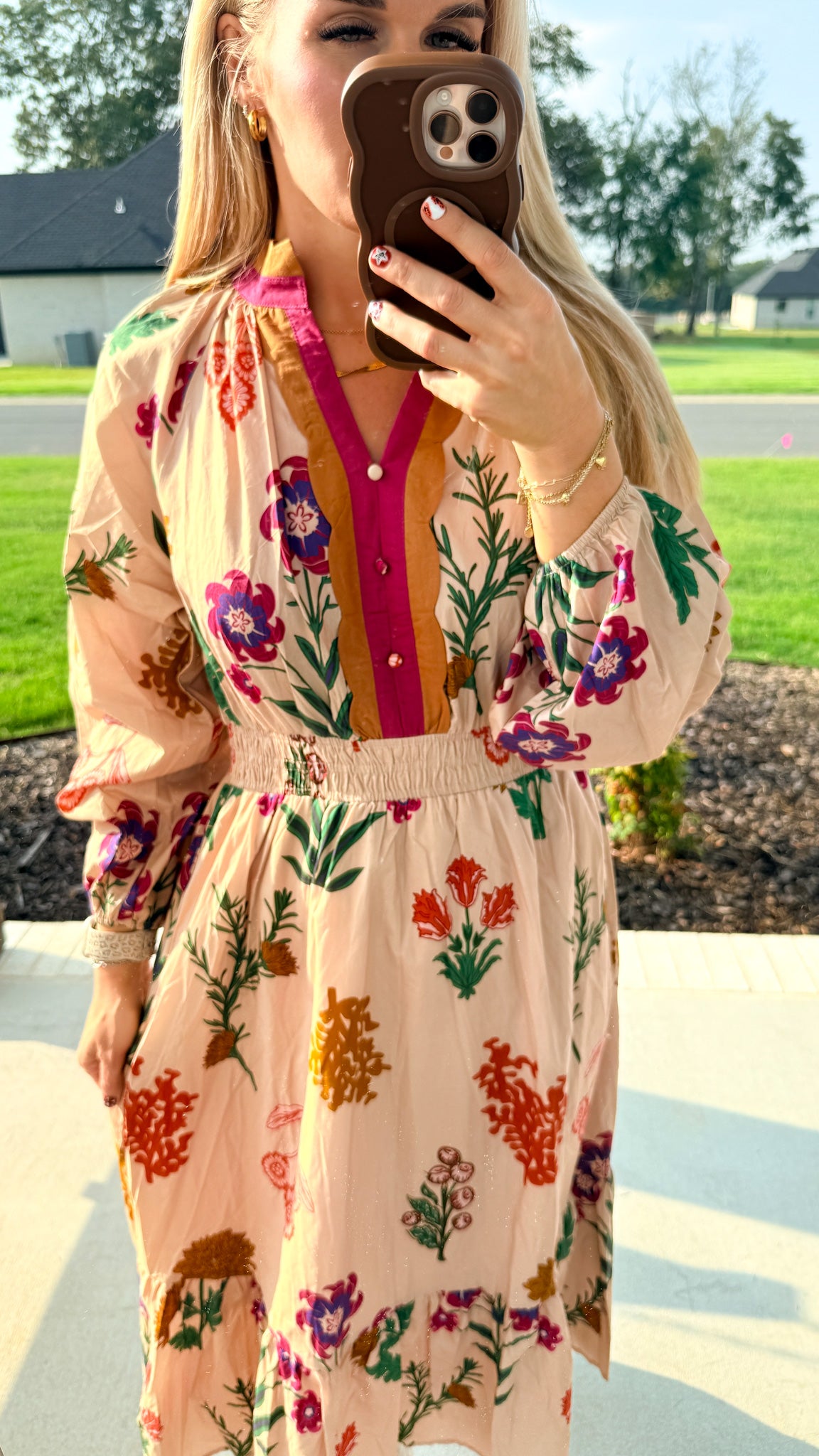 Endless Trail Forest Green Floral Midi Tiered Dress