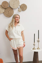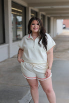 Embrace the beach life with our Beachy And You Know It Cream Half Zip Top! Made with soft fabric, this top not only provides comfort, but also pairs perfectly with our matching shorts (sold separately). Make a statement while feeling relaxed and carefree.