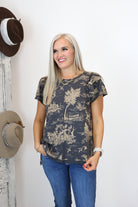Step out with playful confidence in the Charm In The West Charcoal Grey Western Ruffle Top. This stylish piece blends western charm with modern flair, featuring soft charcoal grey fabric and lively ruffles that add a flirty twist to your look. Perfect for casual outings or a fun night out, it offers comfort and personality in every wear. Embrace a fresh take on western style that’s as unique as you are!