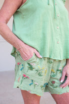 Transform your wardrobe with our Living Miracle Sage Green Embroidered Floral Shorts! These playful shorts feature intricate floral embroidery and pair perfectly with our matching top (sold separately). Make a statement in these uniquely stylish shorts!