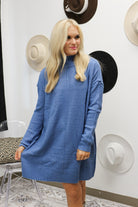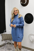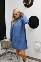 Step into cozy charm with the Pure Chill Blue Knit Sweater Dress. This solid turtleneck mini dress pairs warmth and style effortlessly, perfect for those chilly days when you want to stay snug without sacrificing flair. Its soft knit fabric hugs your silhouette playfully, making it a fun and fashionable choice for any casual outing or relaxed hangout. Embrace comfort with a dash of cool in this wardrobe must-have!