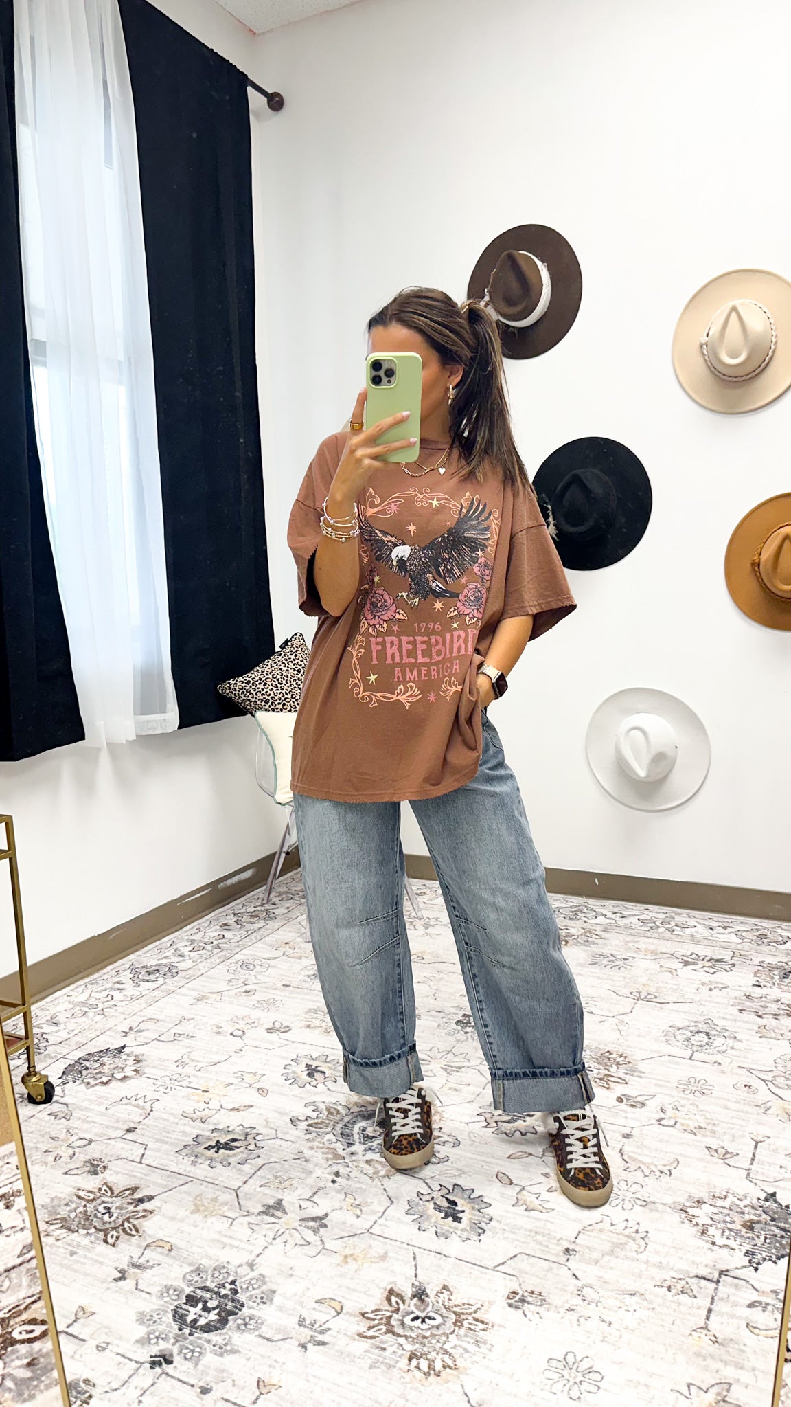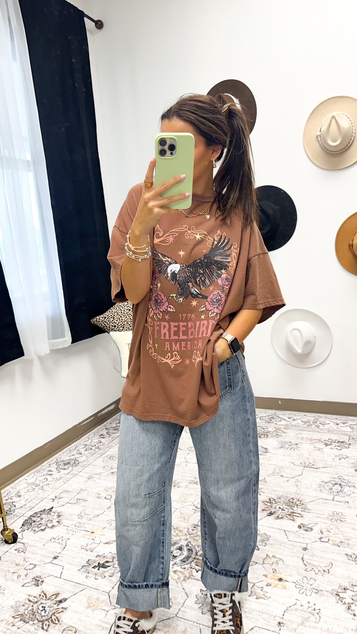 Let your style take flight with the 1996 Free Bird America Brown Graphic Tee. This vintage-inspired shirt blends a cool retro vibe with a warm brown hue, perfect for those who want to show their free spirit. Comfortable and casual, it’s your go-to for making a statement without saying a word. Spread your wings and rock that classic Americana look!