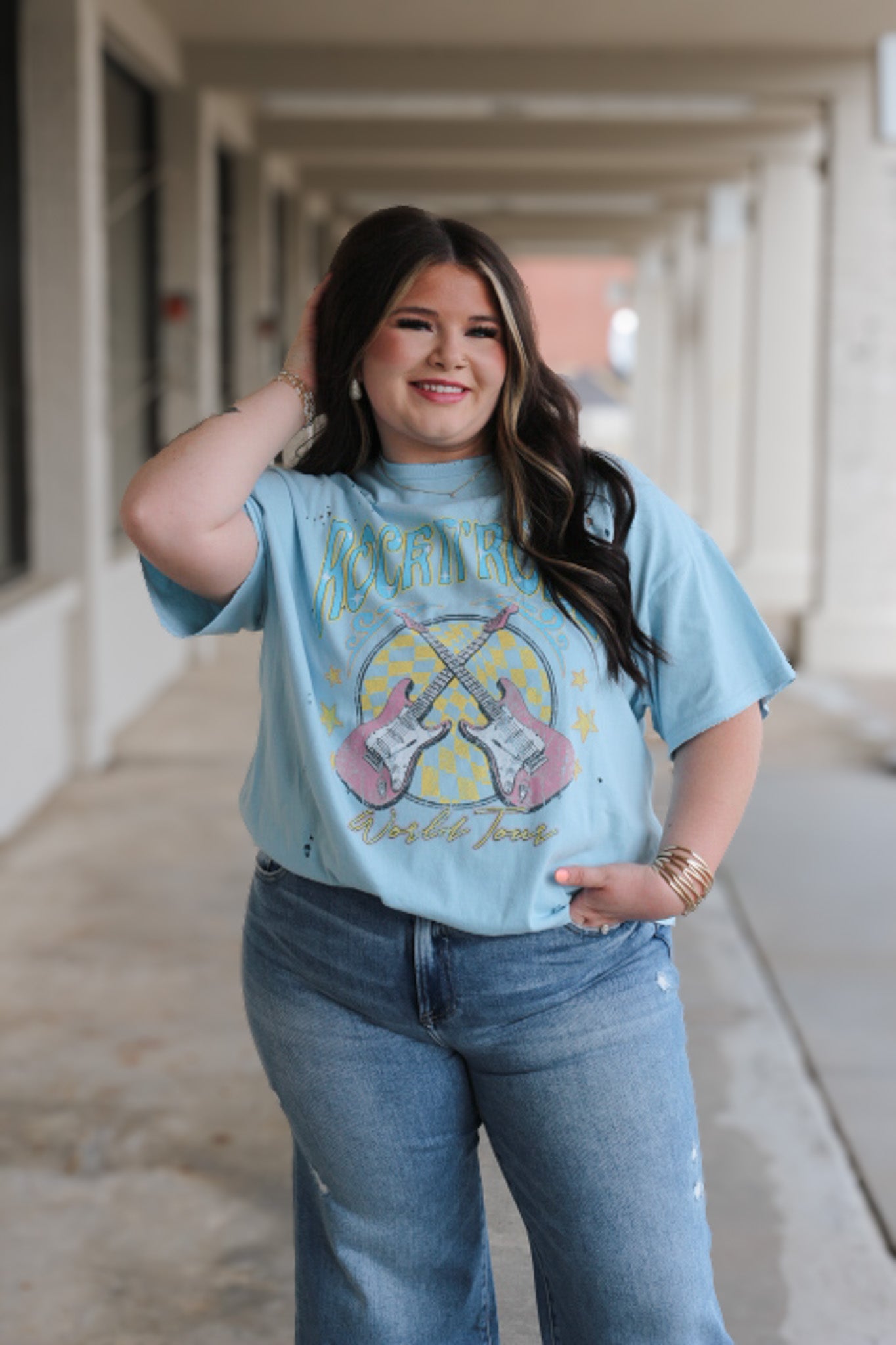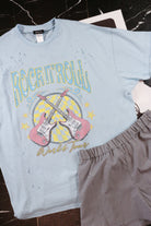 Rock N Roll Light Blue Oversized Graphic Tee