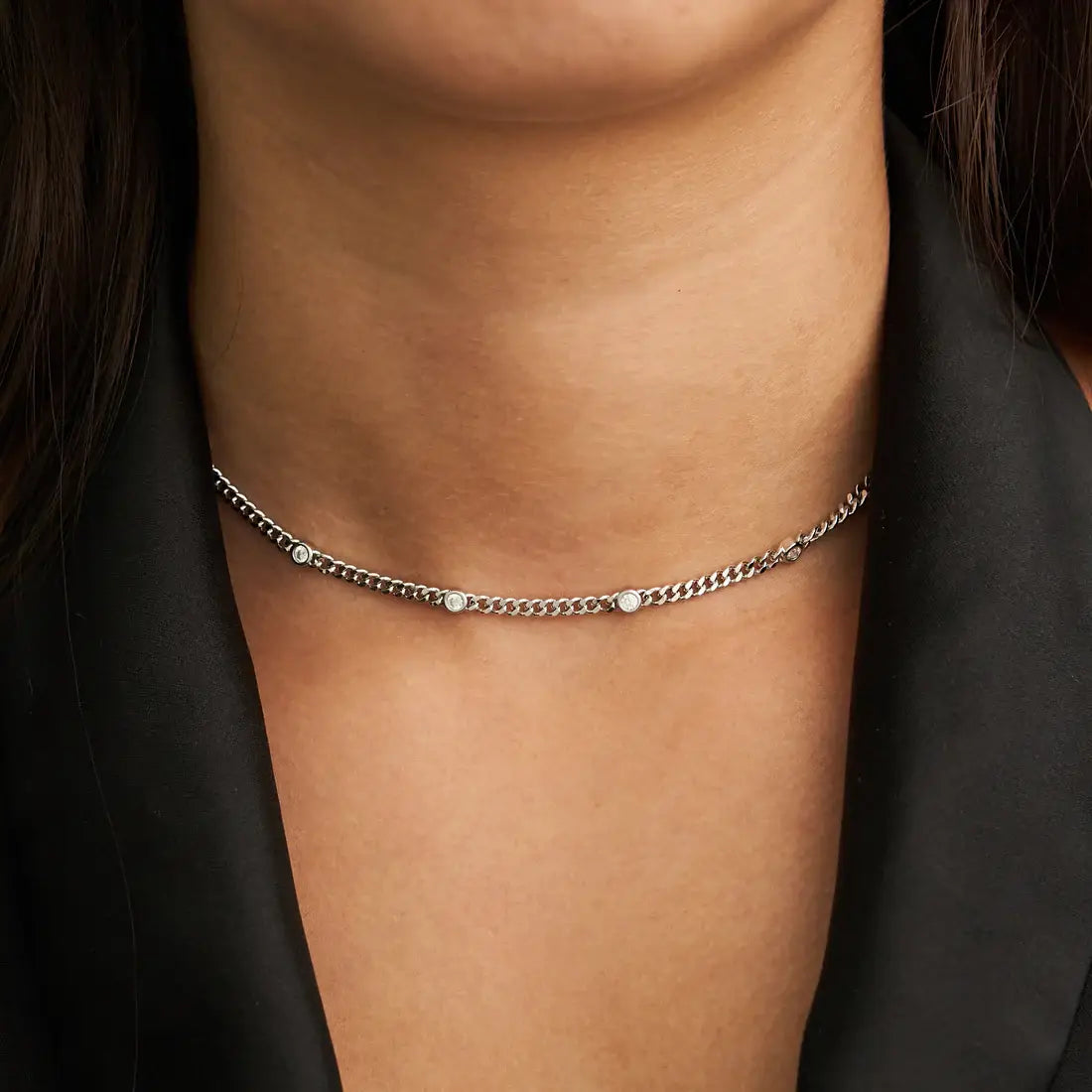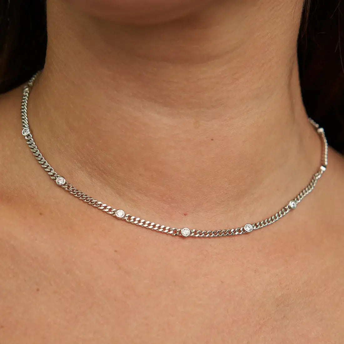 Silver Cz Dainty Choker - Water Resistant