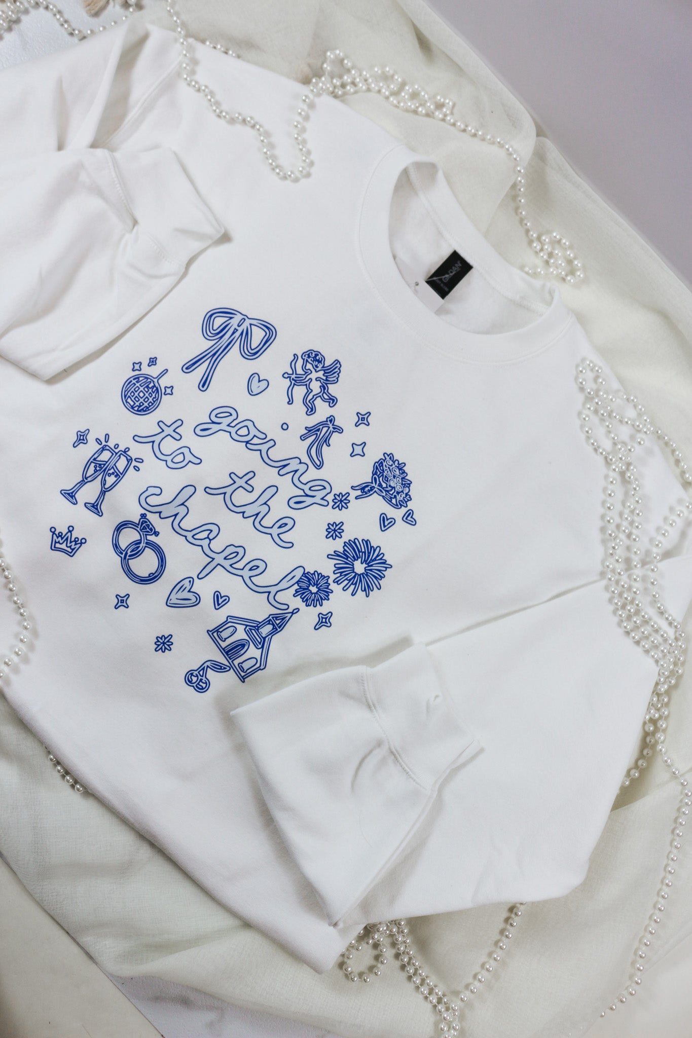 Going To The Chapel White Blue Sweatshirt