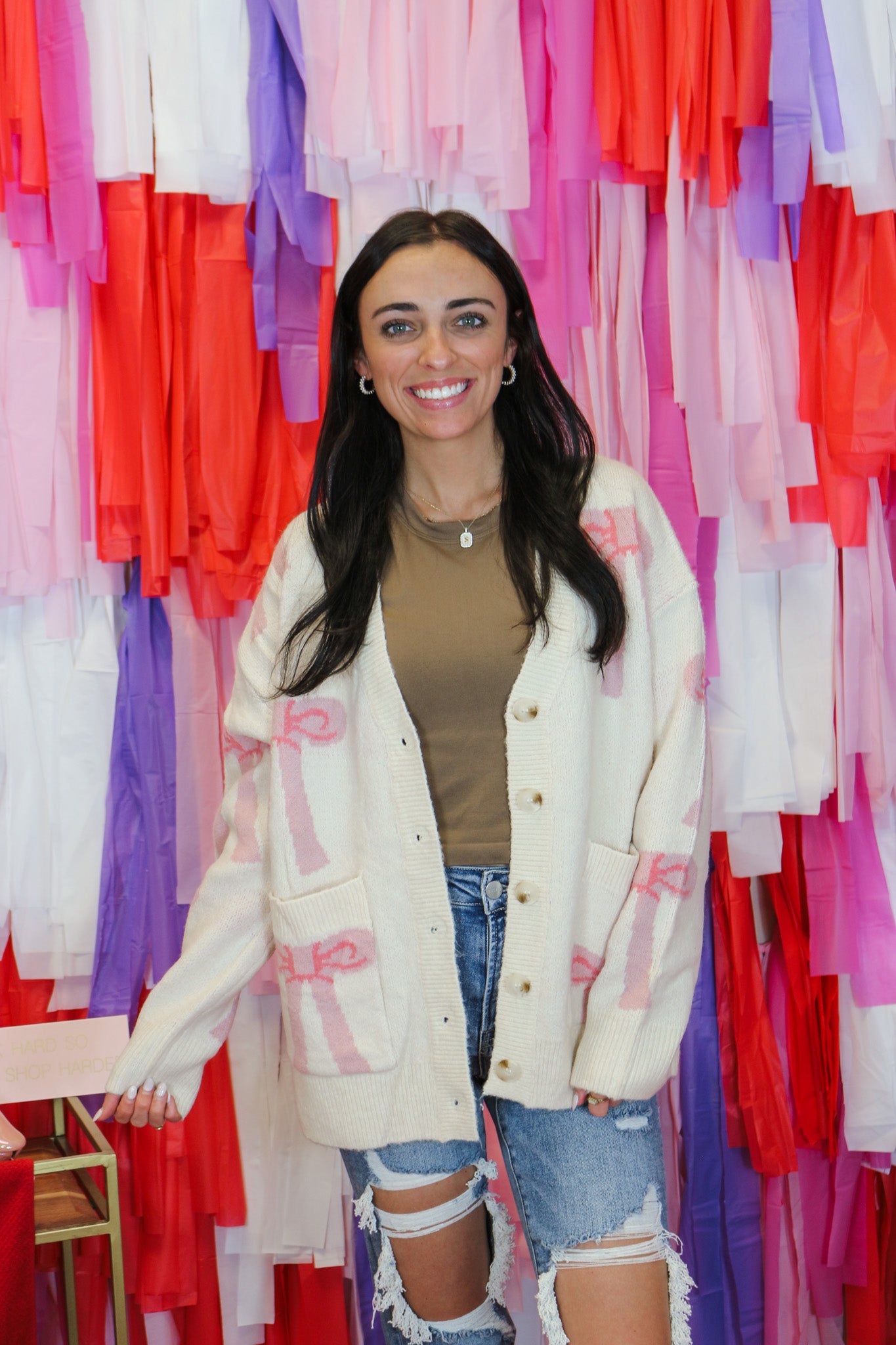 Add To My List Cream & Blush Bow Sweater Cardigan