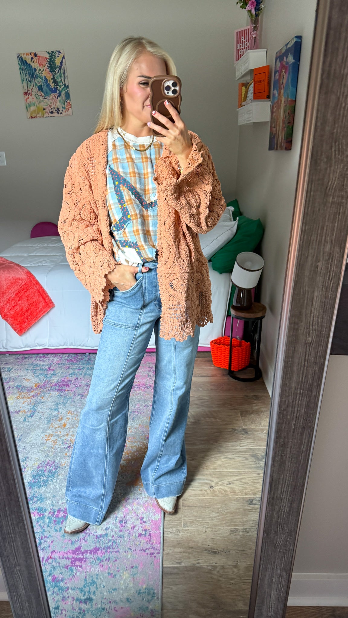 Step into cozy charm with the Brush It Off Crochet Knit Cardigan, available in two playful colors. Crafted for comfort and style, this cardigan is perfect for layering on cool days, adding a touch of fun texture to your outfit while keeping you warm. Whether you're brunching with friends or lounging at home, it’s your go-to cozy companion that’s as versatile as it is adorable. Brush off the chill and brighten your wardrobe today!