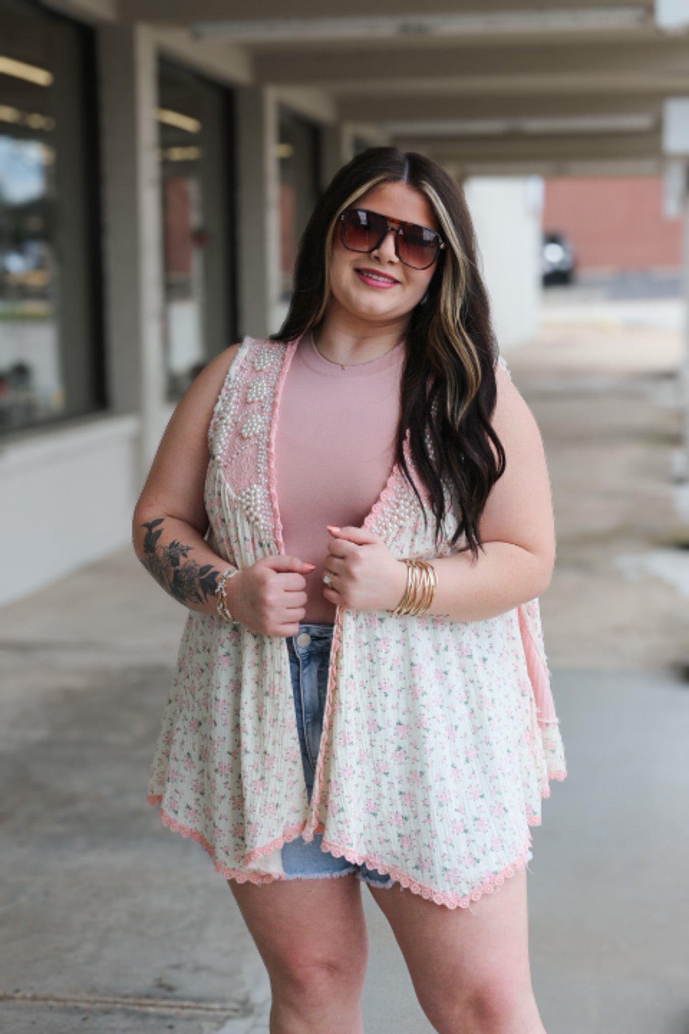 Elevate your wardrobe with our Pearl Pink Floral Sleeveless Cardigan from the Early Blooms collection. This versatile piece adds a touch of feminine elegance to any outfit while keeping you comfortable throughout the day. Perfect for layering over tanks or dresses, its delicate floral pattern and soft pink hue will instantly refresh your seasonal look. Don't miss this essential piece that transitions effortlessly from office to evening.