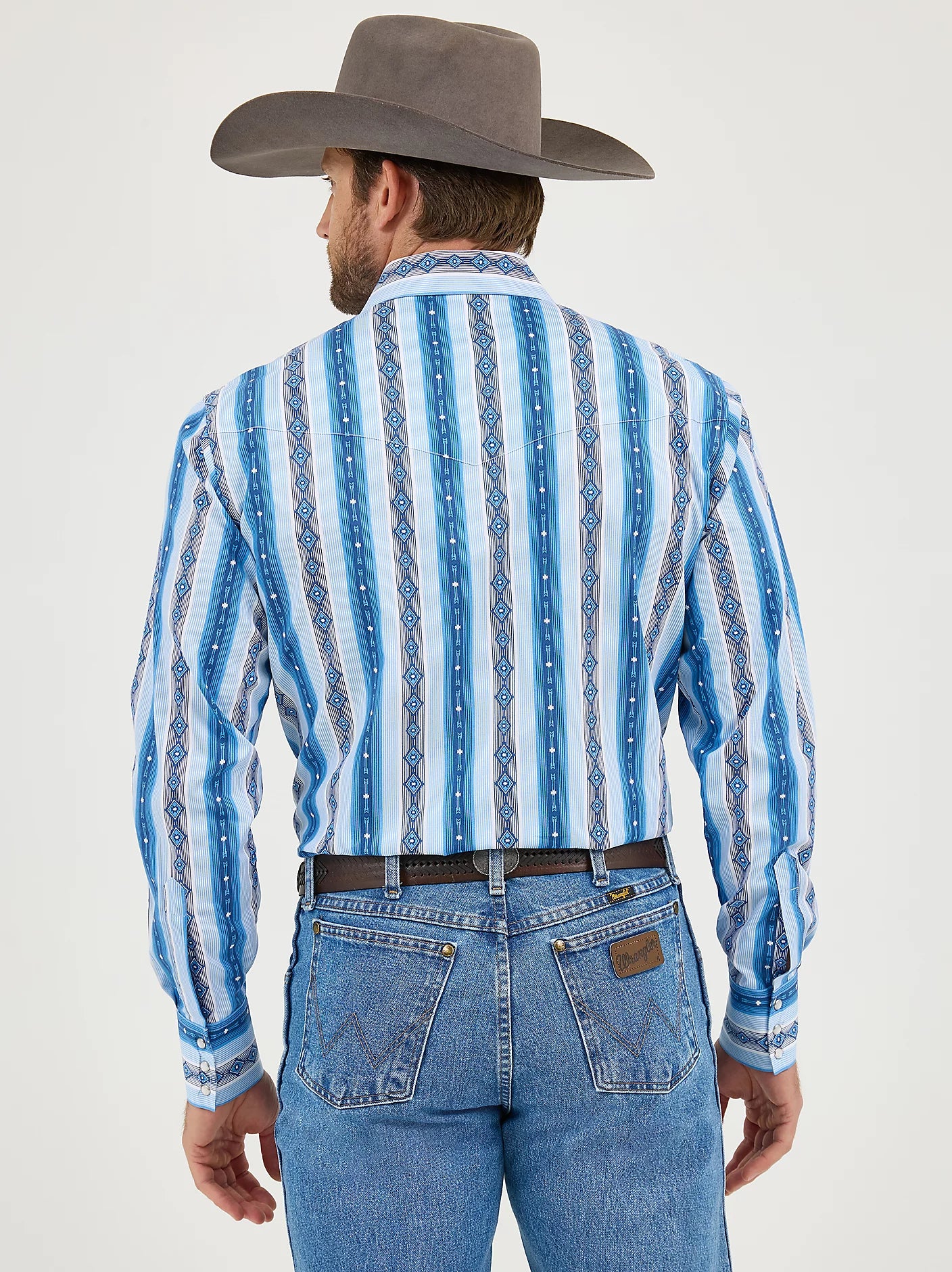 Wrangler Men's Checotah River Blue Long Sleeve Western Snap Printed Shirt