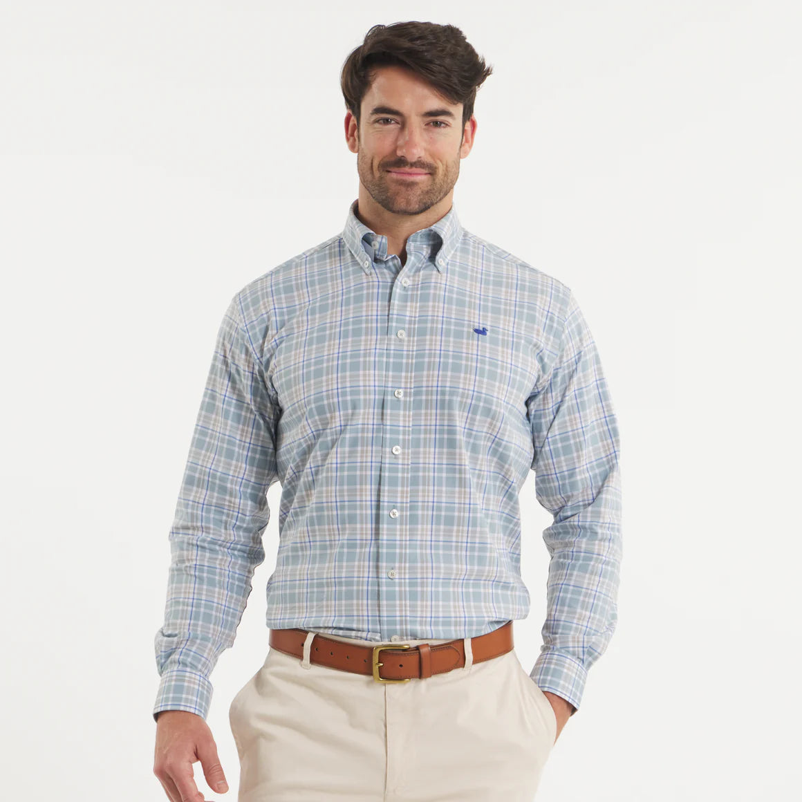 Men's Grainger Performance Plaid Dress Shirt- Sage & Burnt Taupe