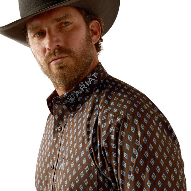 Ariat Men's Brown Light Blue Team Logo Oak Shirt