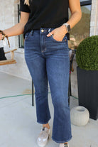 Cropped inseam on super stretch denim in rich indigo shade. 10 1/4" Front Rise (include waistband), 17 1/4" Leg Opening, 26 3/4" inseam (Size 27)