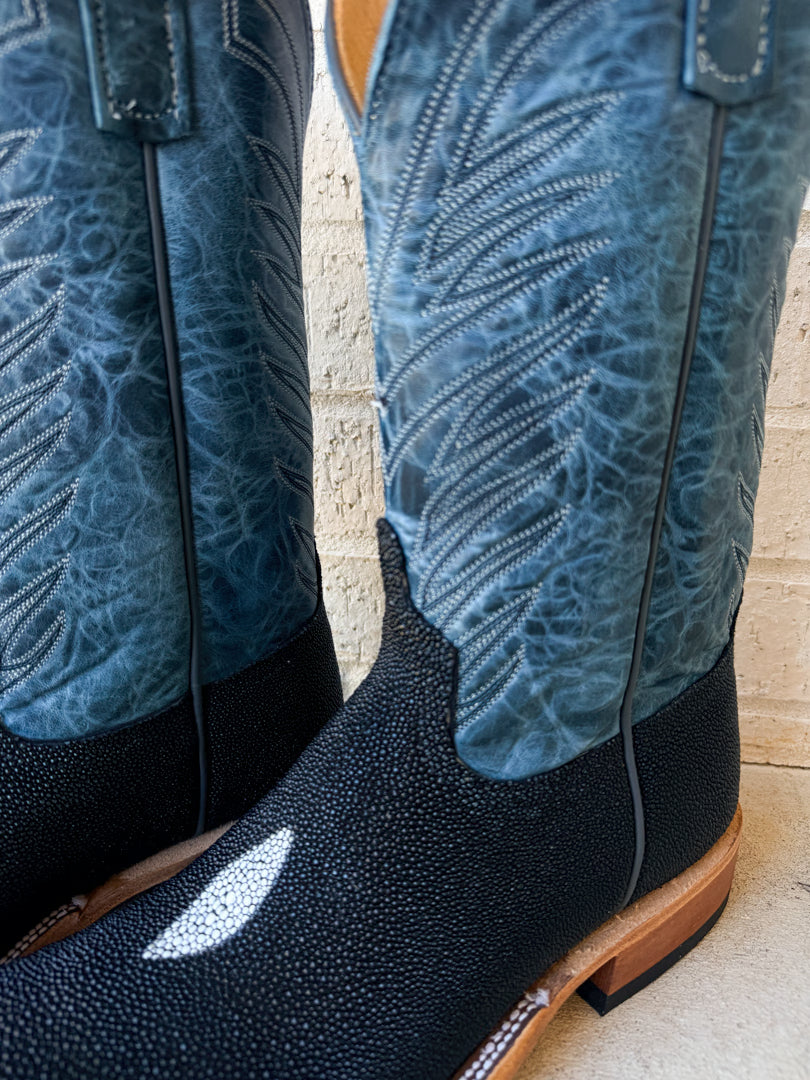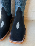 Elevate your western wardrobe with the ultimate fusion of durability and high-end style. These Anderson Bean Custom Stingray Boots feature a resilient black stingray vamp and a striking 12" Blue Lava shaft. Handcrafted in the USA and custom-designed from the stitch pattern to the hybrid sole, these boots offer a one-of-a-kind look that commands attention while providing the legendary comfort Anderson Bean is known for.