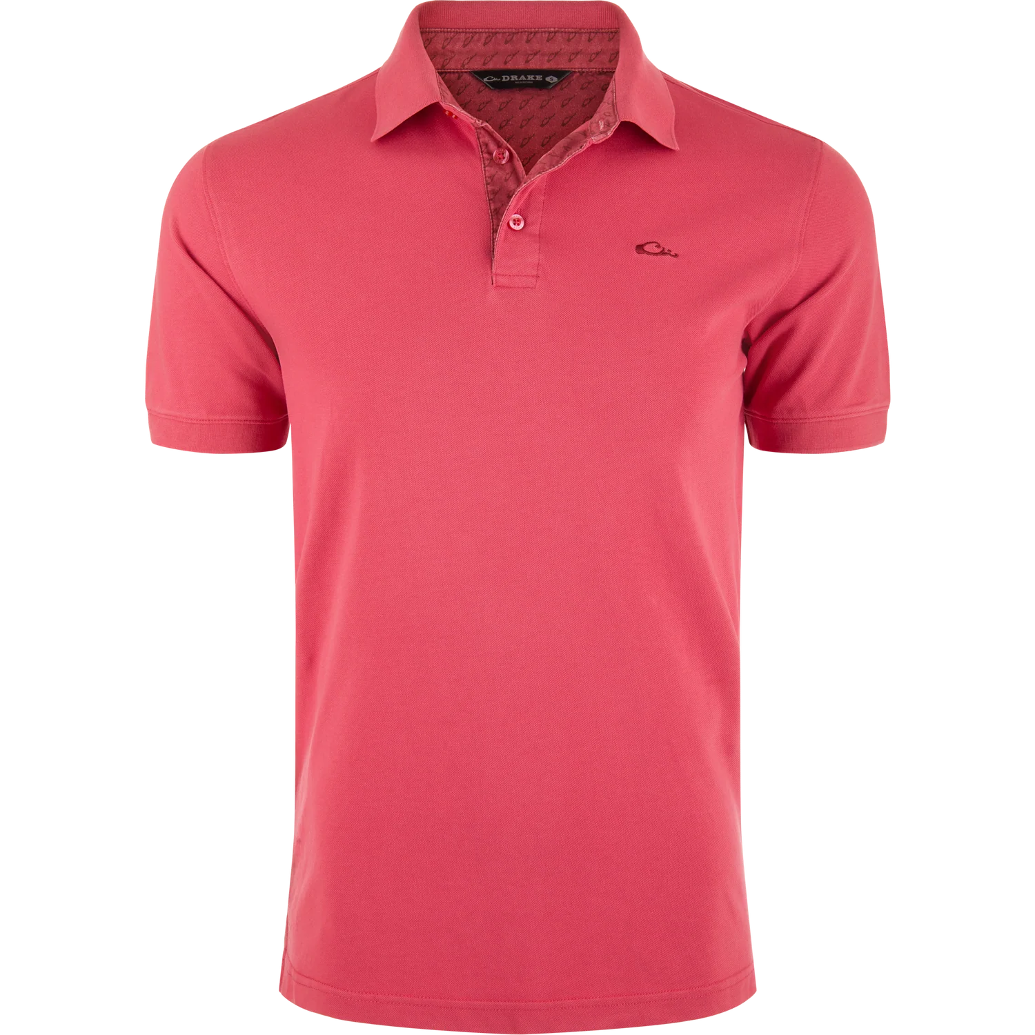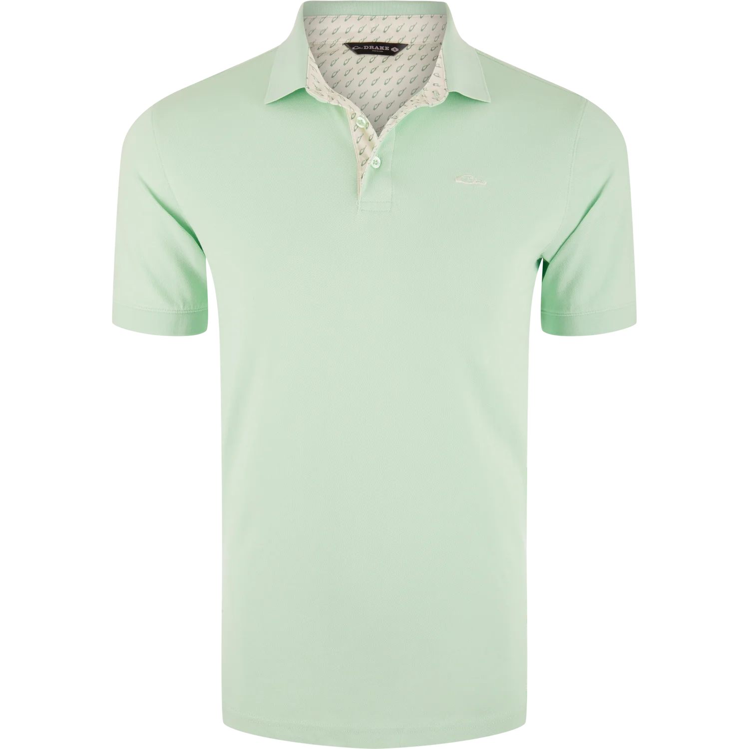 The Drake Pique Polo is our take on the classic pique polo but with a twist. We have added stretch to modernize the performance and then added our distinctive embroidered Drake duck head logo on the chest. We kept it timeless in silhouette with a three-button placket with dye-to-match faux mother-of-pearl buttons, a 2 x 2 rib knit collar and sleeve cuffs, and a split tail hem. Combining uniqueness and classic styling makes the Drake Pique Logo Polo your next favorite shirt.