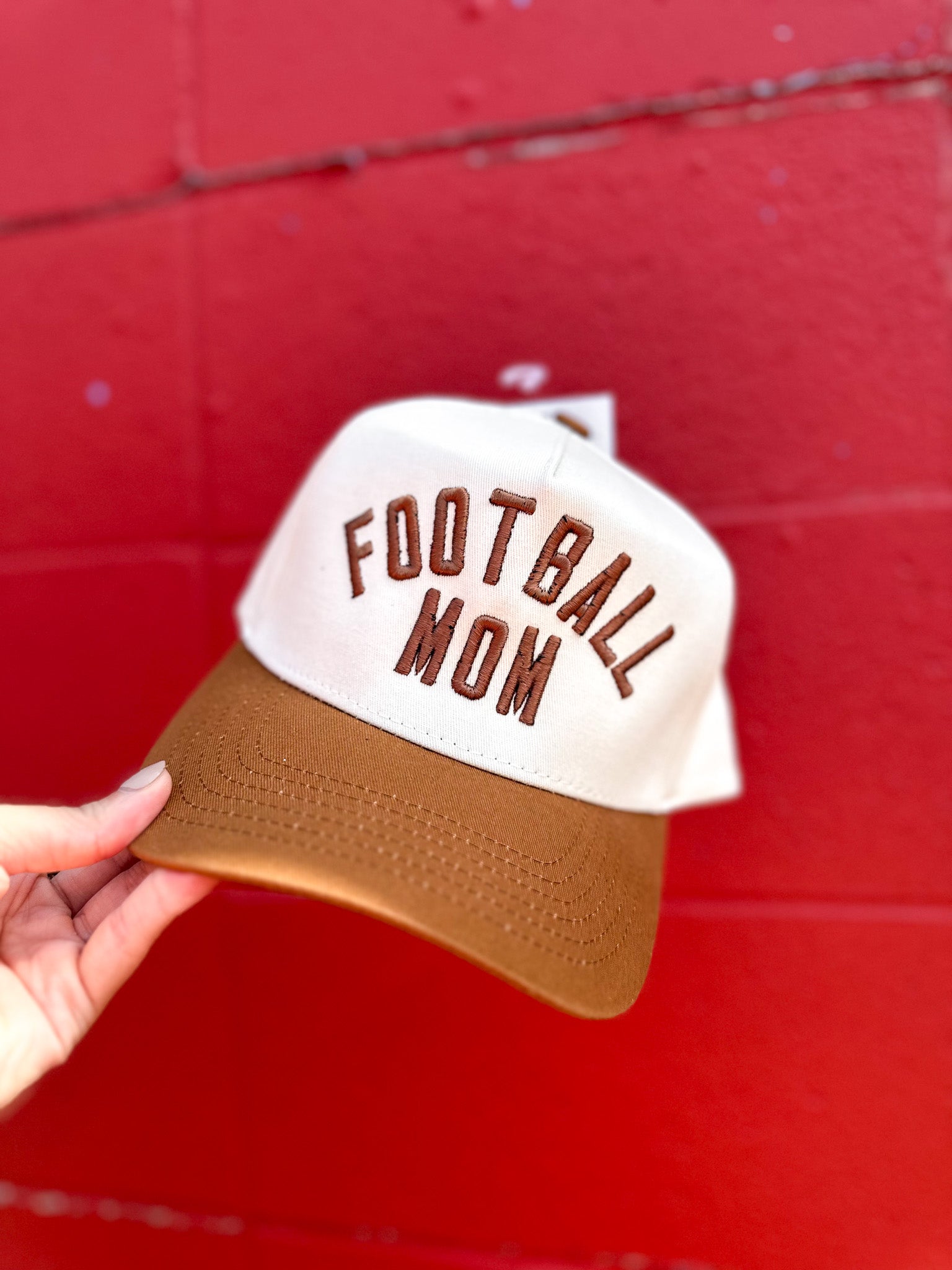 Cream Brown Football Mom Trucker Hat