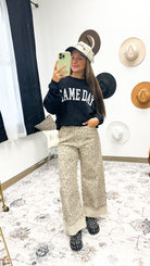 Get ready to own game day with this sleek Gameday Black Top! Perfect for cheering on your team or hanging out with friends, it combines comfort and style effortlessly. The bold black design makes it easy to pair with your favorite jeans or shorts, while its comfy fit ensures you stay cool and confident all day long. Whether you're at the tailgate or watching from home, this top is your ultimate fan gear upgrade!