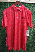 Get ready to score style points with this Men's Red Football Print Polo! Featuring a bold red hue and fun football-themed prints, it’s perfect for game day or casual hangouts. The comfy fabric keeps you cool whether you’re cheering from the sidelines or grabbing a bite after the big win. Step up your sporty look with a shirt that’s as lively as your love for the game!