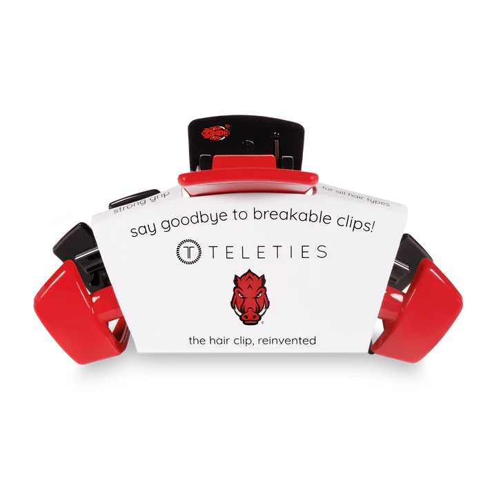Say goodbye to breakable hair clips! We have perfected the hair tie and now have re-invented the clip. Meet the University of Arkansas Large Claw Hair Clip in White Black, crafted to elevate any hairstyle with the ideal blend of style and function.
