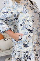 Fancy Blue Floral Puff Sleeve Mini Dress