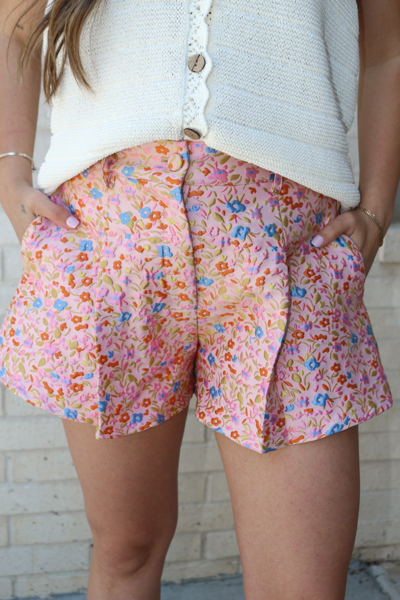 Get ready to bloom with these Pink Floral Pleated Shorts! Perfect for any fun and flirty fashionista, these shorts feature a playful pink floral pattern and flattering pleats. Stay stylish and comfortable all day long. (Get yours now before they're gone!)
