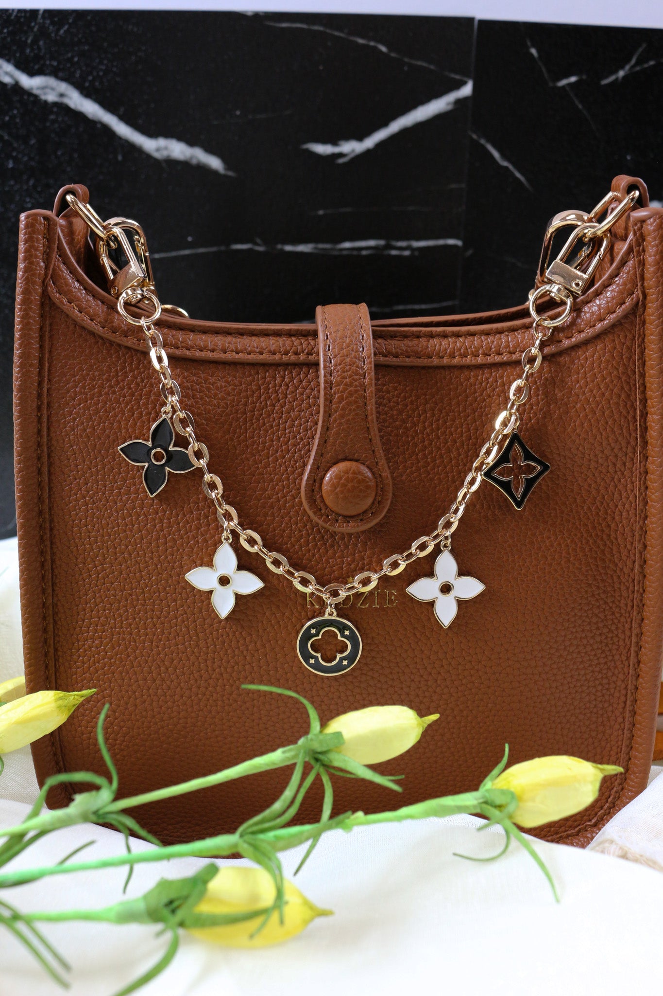 Black White Clover Gold Chain Purse Charm