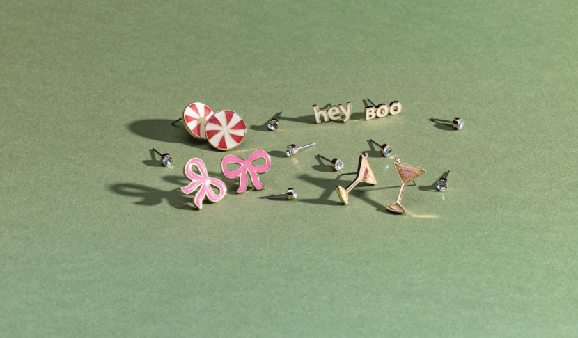 2-piece set. Pair of glow-in-the-dark enamel icon earrings comes on display card with pair of pavé rhinestone studs. Hypoallergenic posts.