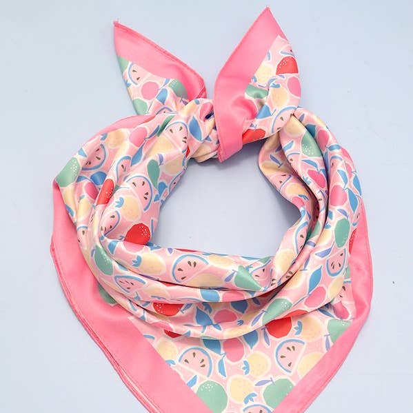 Pink Fruit Print Silky Feel Bandana Scarf