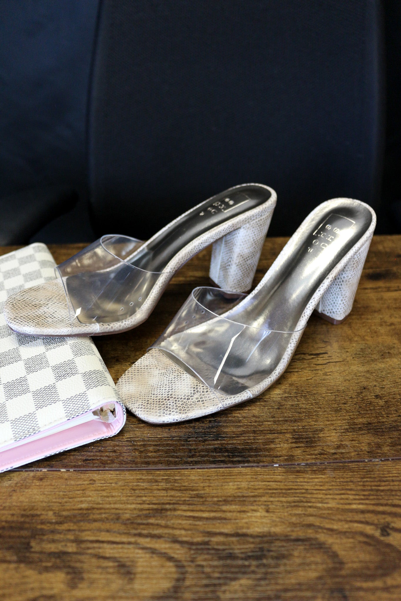 Elevate your fashion game with the stunning FRIDA sandals. These sandals come with a thick metallic textured wrapped heel that is both comfortable and trendy. They also feature a clear PVC strap that gives your feet a chic and modern look. Whether you're aiming for a casual denim look or a more formal dress, these sandals will be the perfect complement to your wardrobe. Just slip them on and get ready to turn heads!