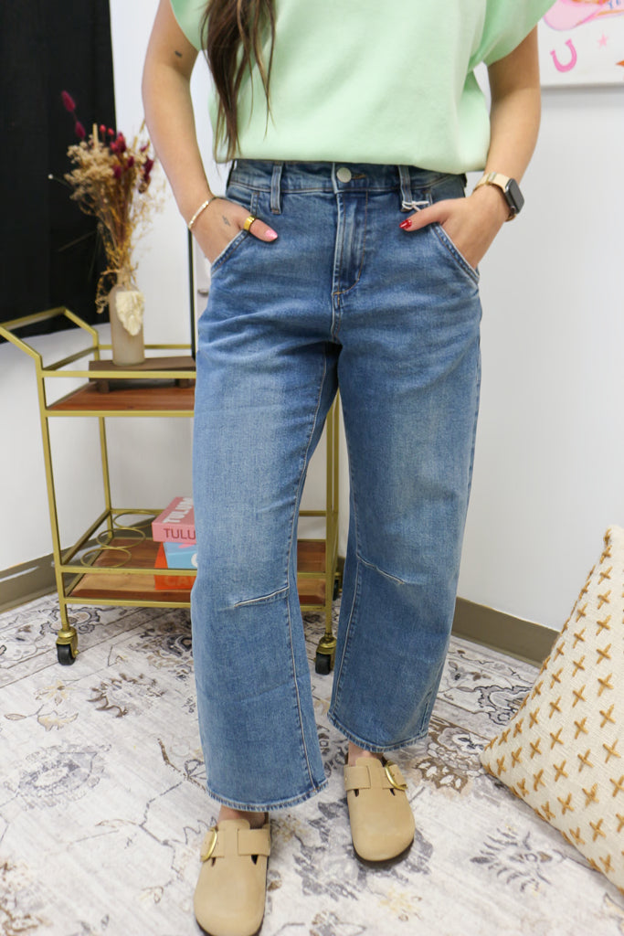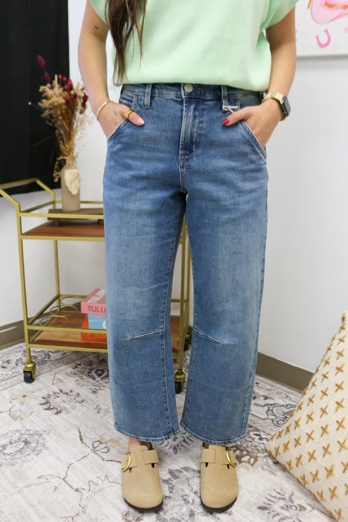 Slip into the Kenia Lasso Barrel Jean and channel your inner cowgirl with a modern twist. This playful silhouette features a flattering barrel leg that hits just right, crafted from a premium 98% cotton and 2% spandex blend for all-day comfort and just enough stretch to move with you. Dear John's signature fit meets Western-inspired style—perfect for making a bold statement whether you're hitting the town or the ranch.