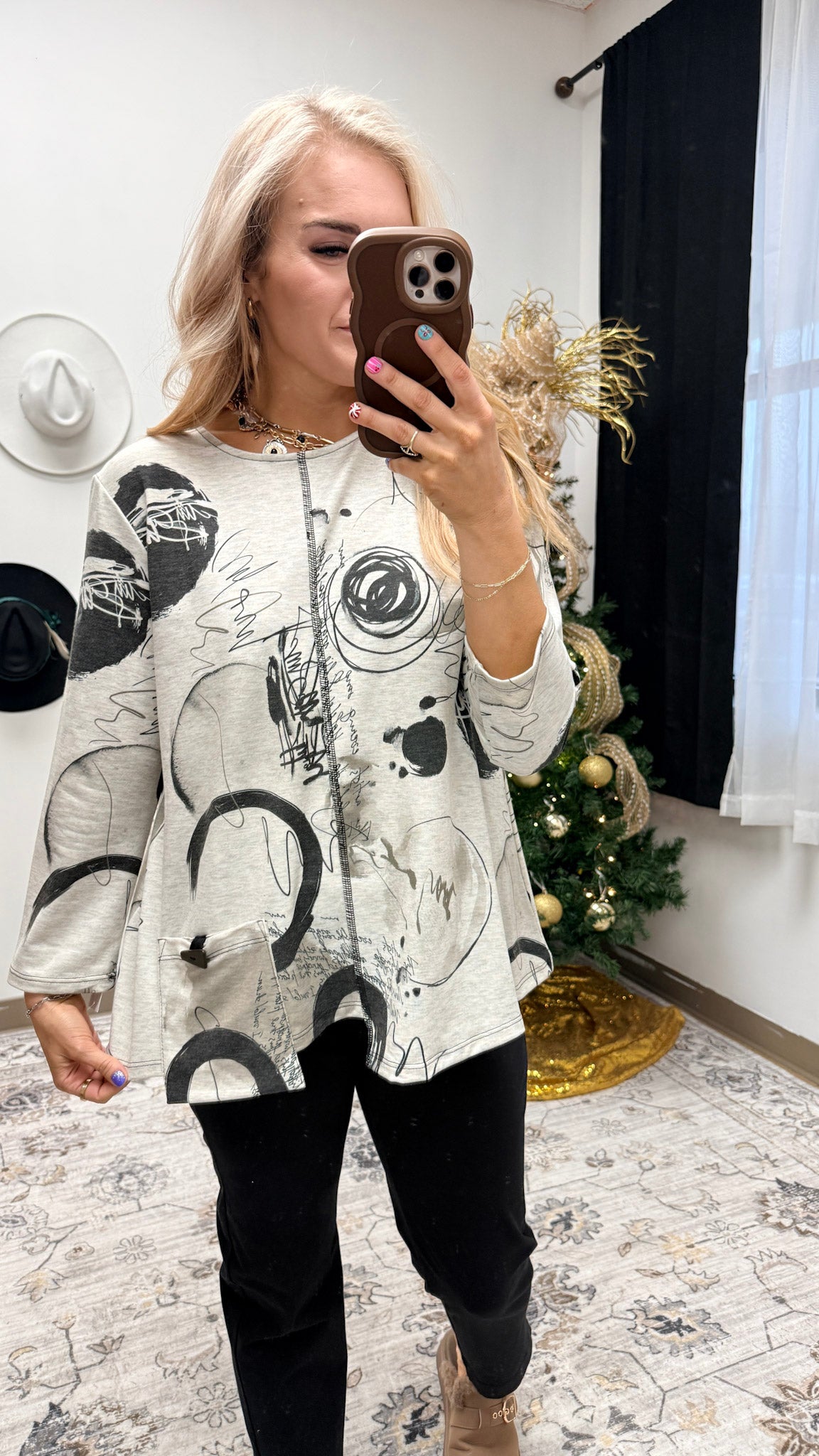Jess & Jane "Tempo" Asymmetric Hem Offset Pocket Top