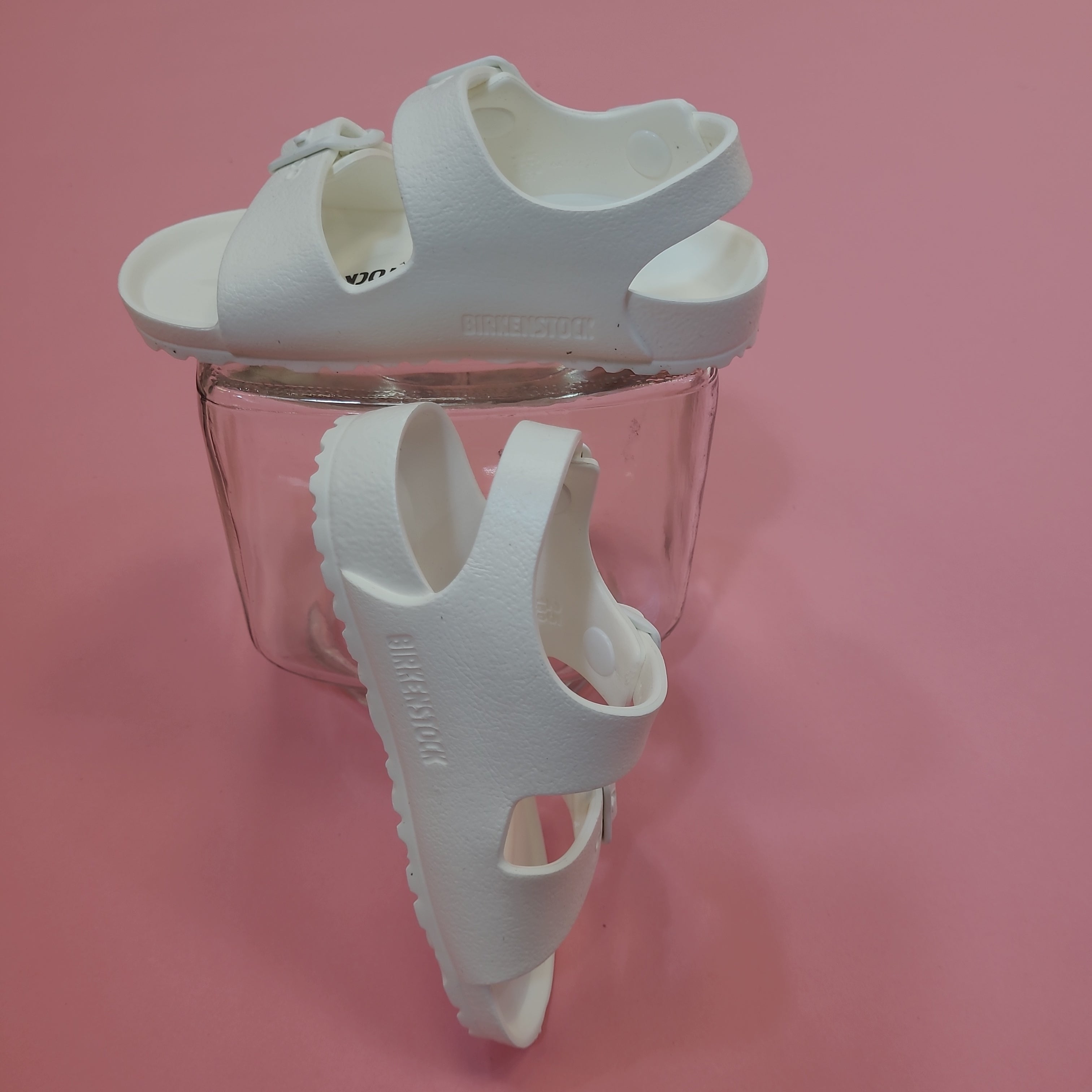 The BIRKENSTOCK Milano - a classic back-strap sandal with functional style for kids. Modeled on the cork original, this back-strap sandal is made from ultra lightweight and highly flexible EVA. These sandals are shock absorbing, waterproof, and skin-friendly. Wear them at the beach, in the backyard, or by the pool. Sandals for all-day play!