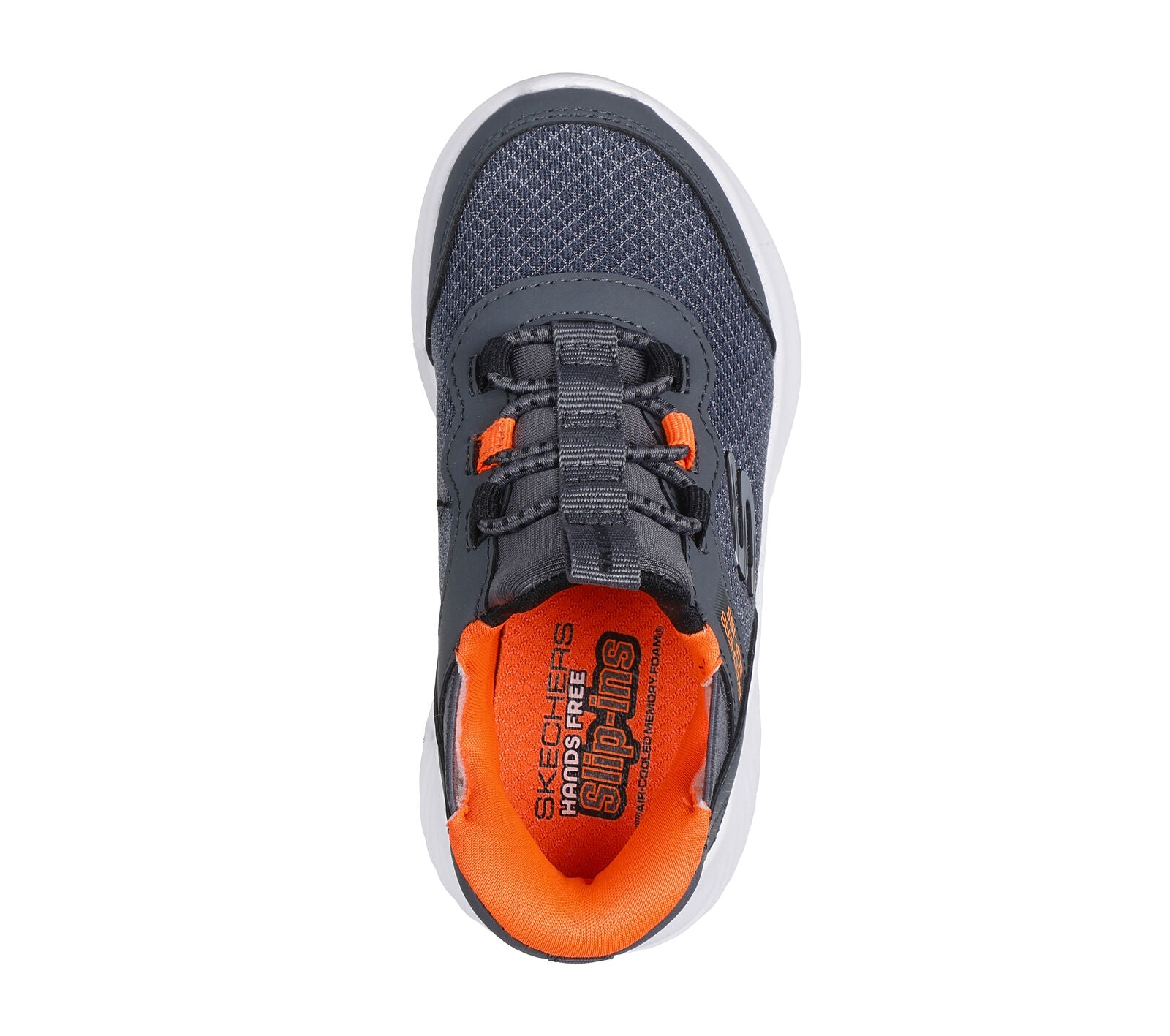 Effortless comfort to start their day is here with Skechers Hands Free Slip-ins®: Bounder - Brisk-Burst. Designed with our exclusive Heel Pillow™, this TOUCHLESS FIT® slip-on style features a mesh and synthetic upper with stretch laces, Skechers Adaptive Closure, and a cushioned Skechers Air-Cooled Memory Foam® insole.