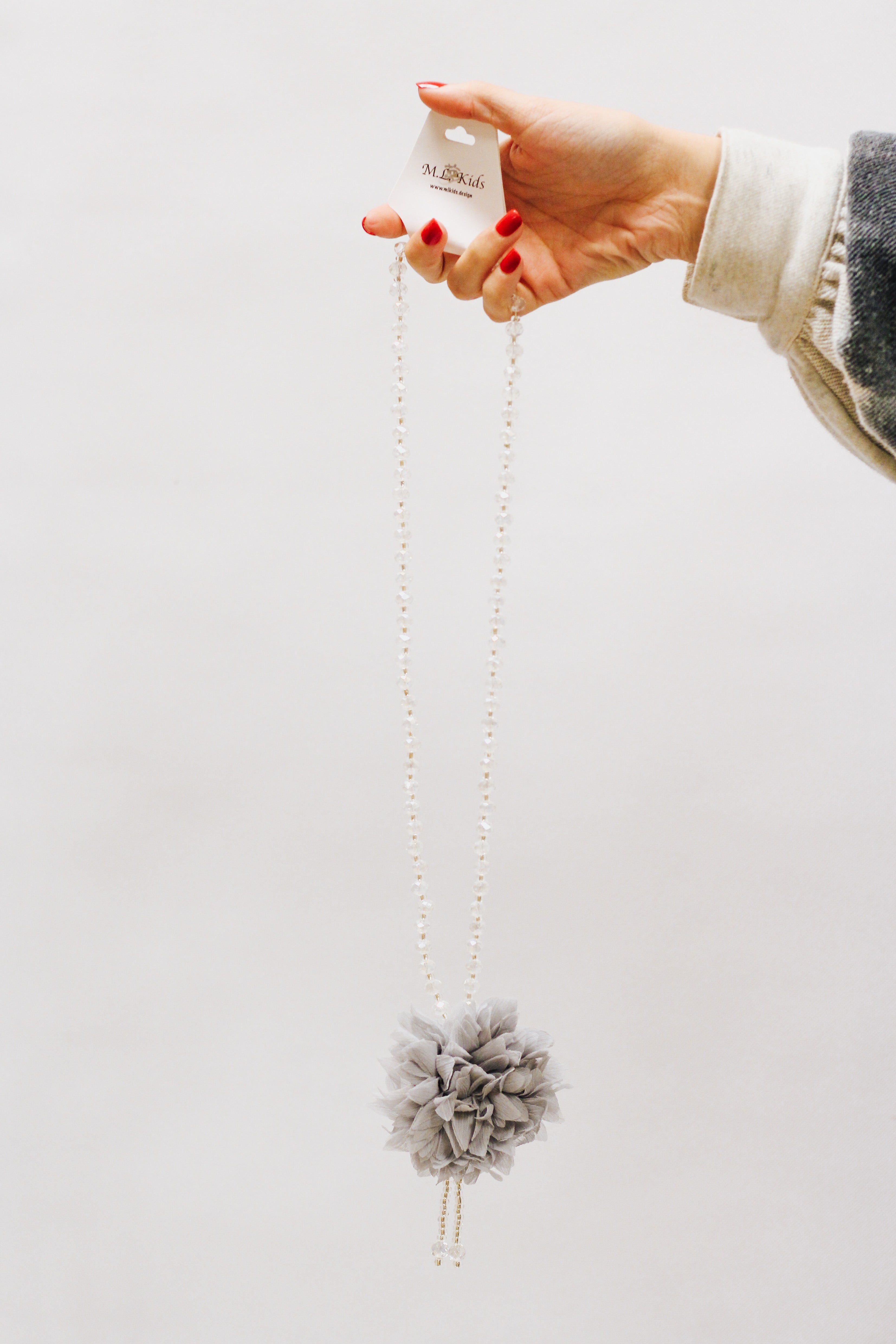 Beaded Grey Flower Girls Necklace